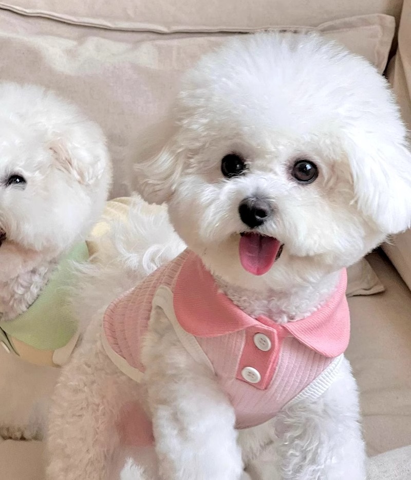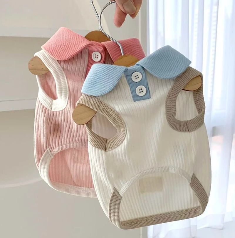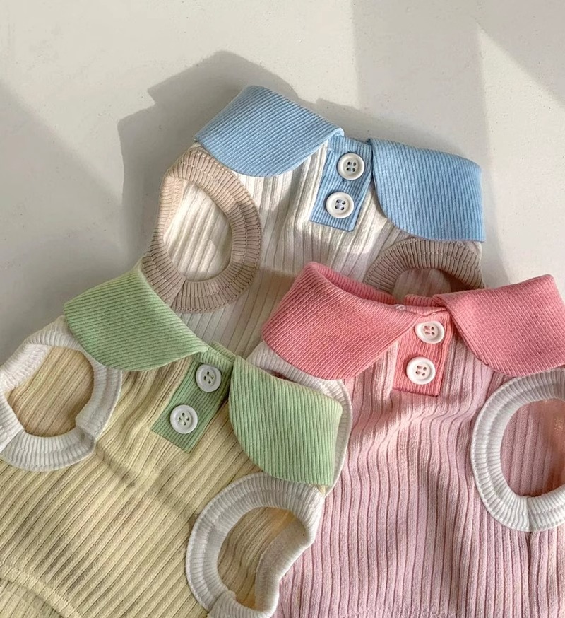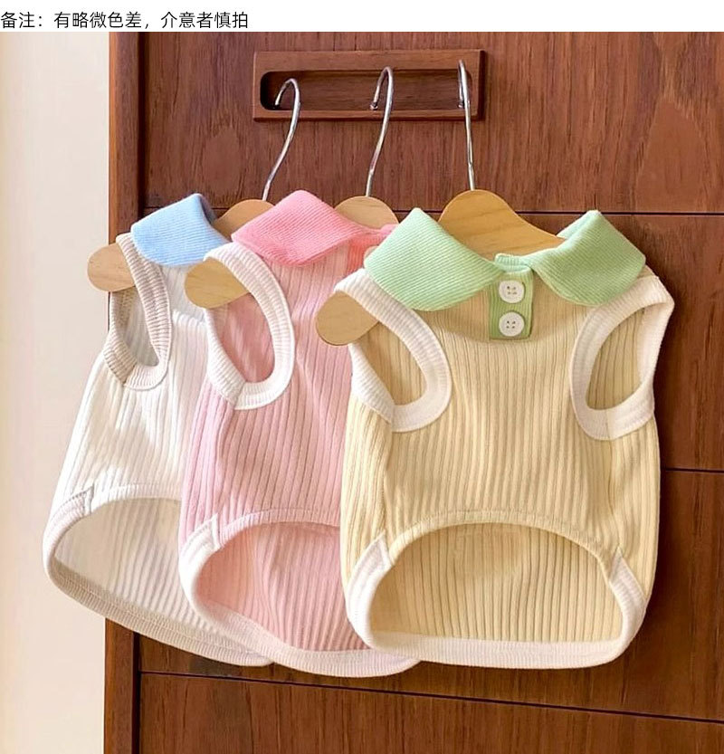 Japón y Corea del Sur viento primavera verano perro macaron color contraste solapa camiseta casual gato delgado mascota ropa de perro peluche