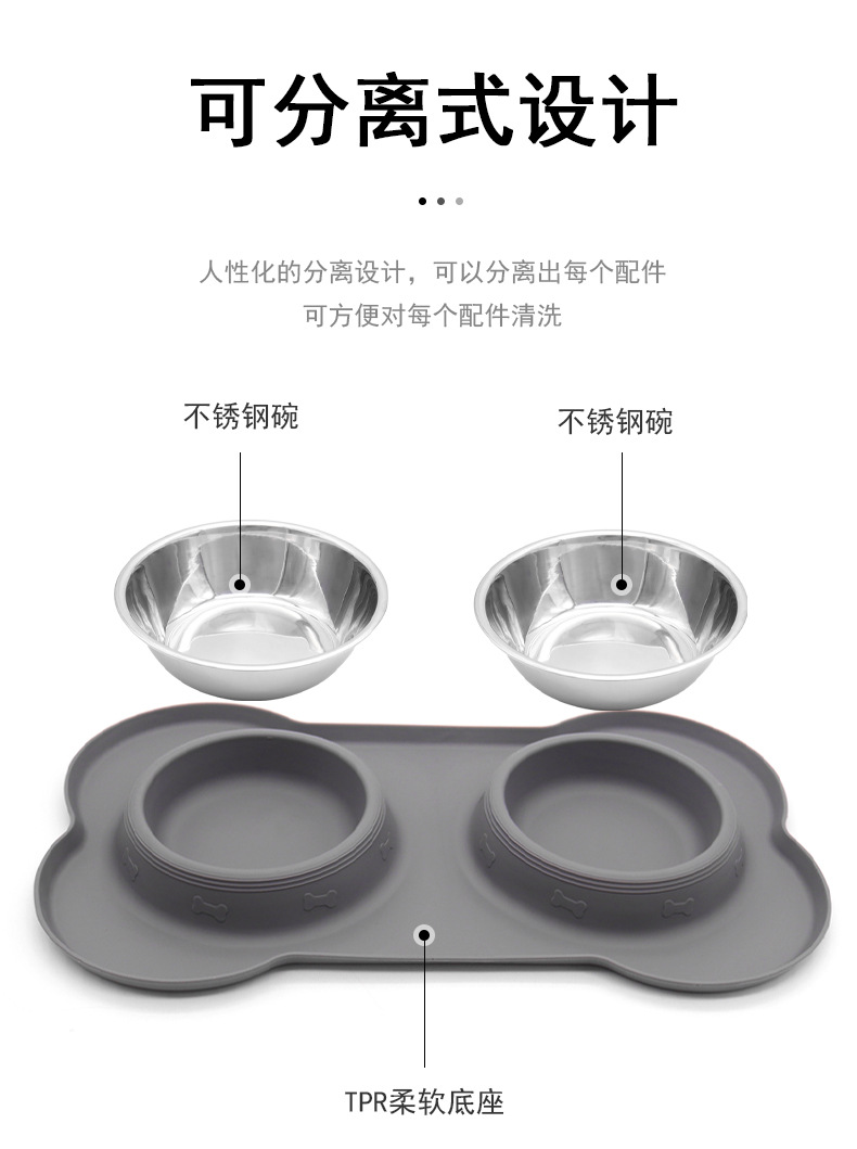 Tazón para perros Tazón para perros Anti-volcado Tazón de arroz para perros de acero inoxidable Tazón doble Tazón para comida para perros 2 Tazón para beber Tazón para mascotas al por mayor