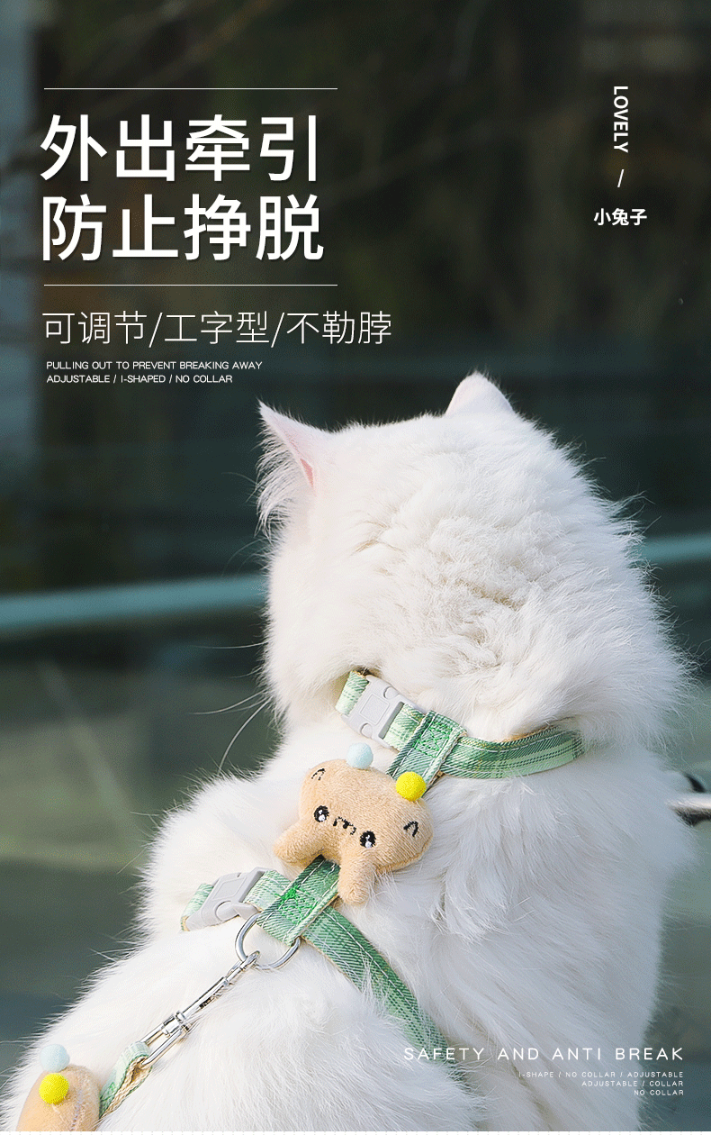 Correa de gato anti-rotura gato especial cuerda para salir gato cadena perro mascota correa de pecho ajustable