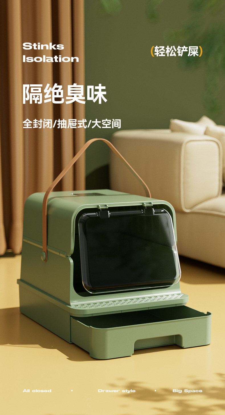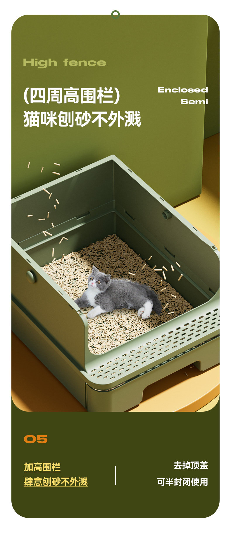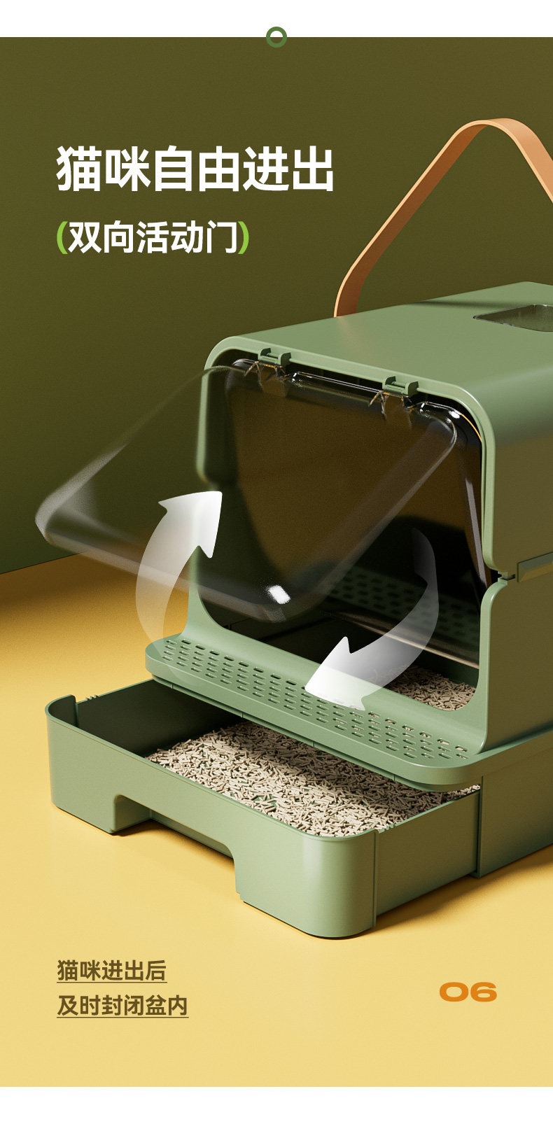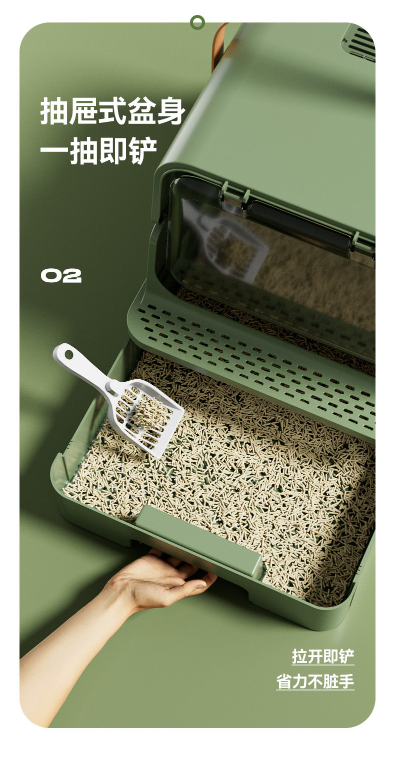 La caja de arena para gatos está completamente cerrada, tipo cajón de gran tamaño, a prueba de salpicaduras externas, cerca súper alta, inodoro para gatos gigante, lavabo de arena, desodorante