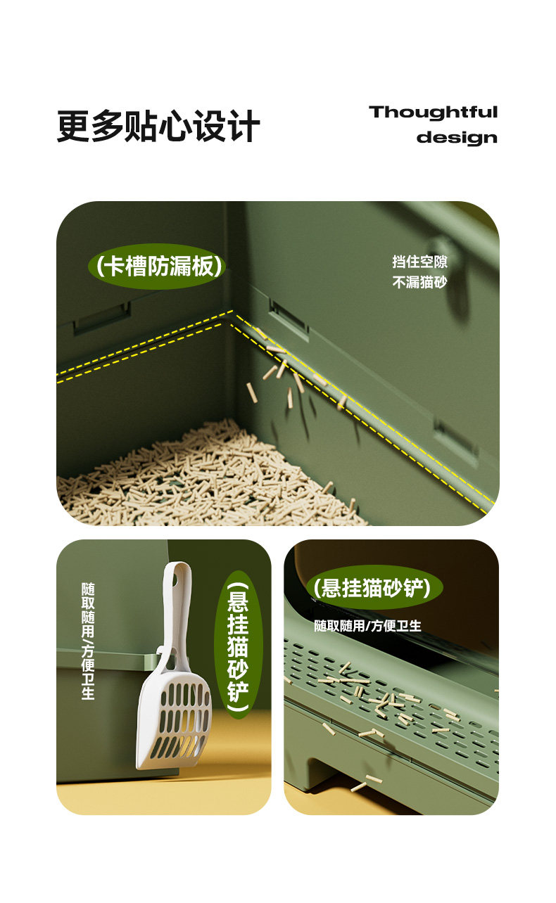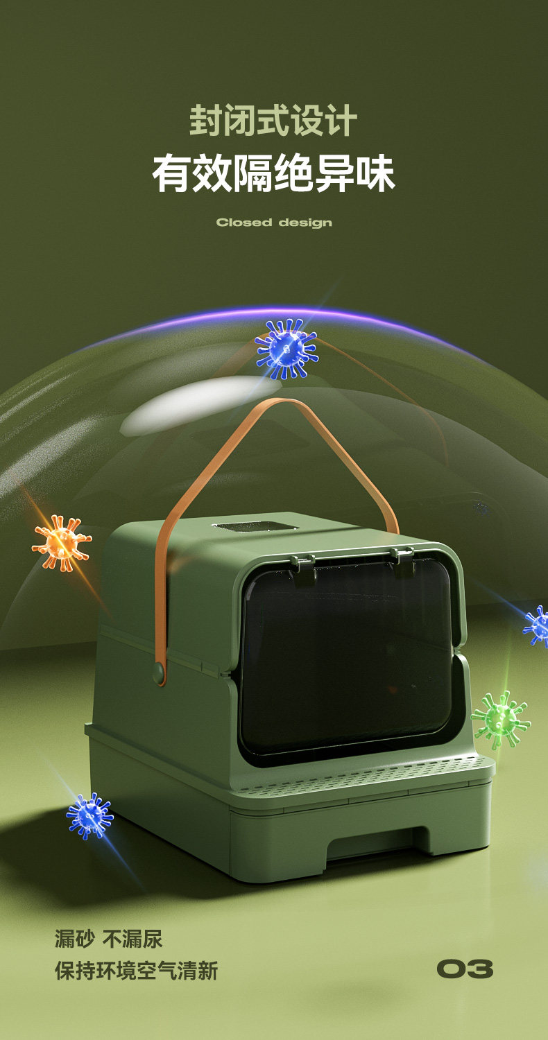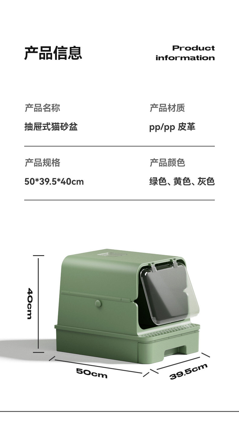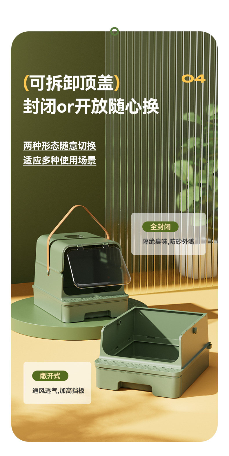 La caja de arena para gatos está completamente cerrada, tipo cajón de gran tamaño, a prueba de salpicaduras externas, cerca súper alta, inodoro para gatos gigante, lavabo de arena, desodorante