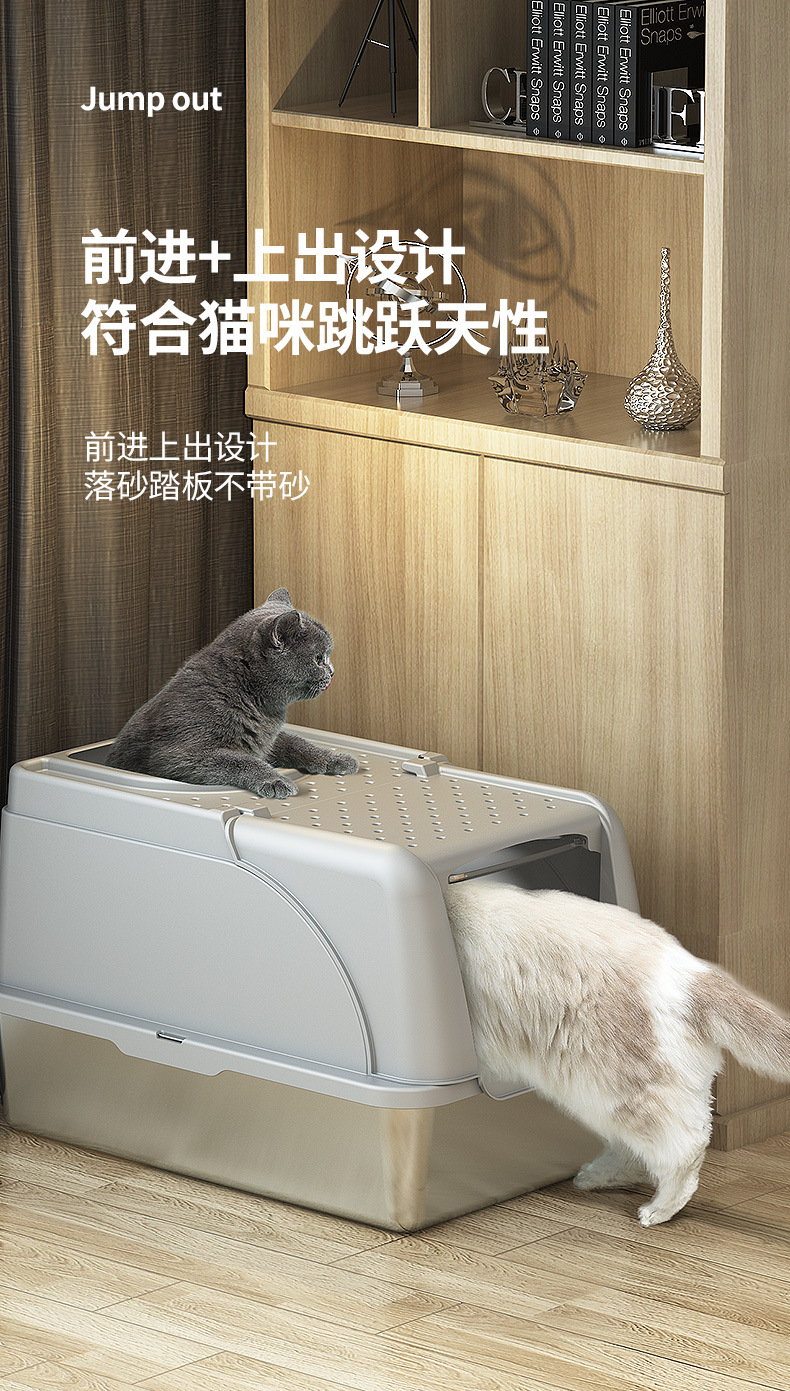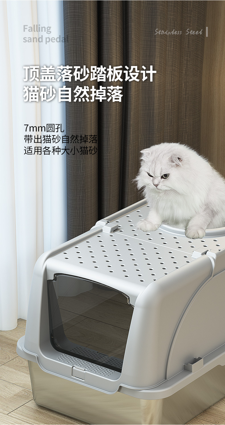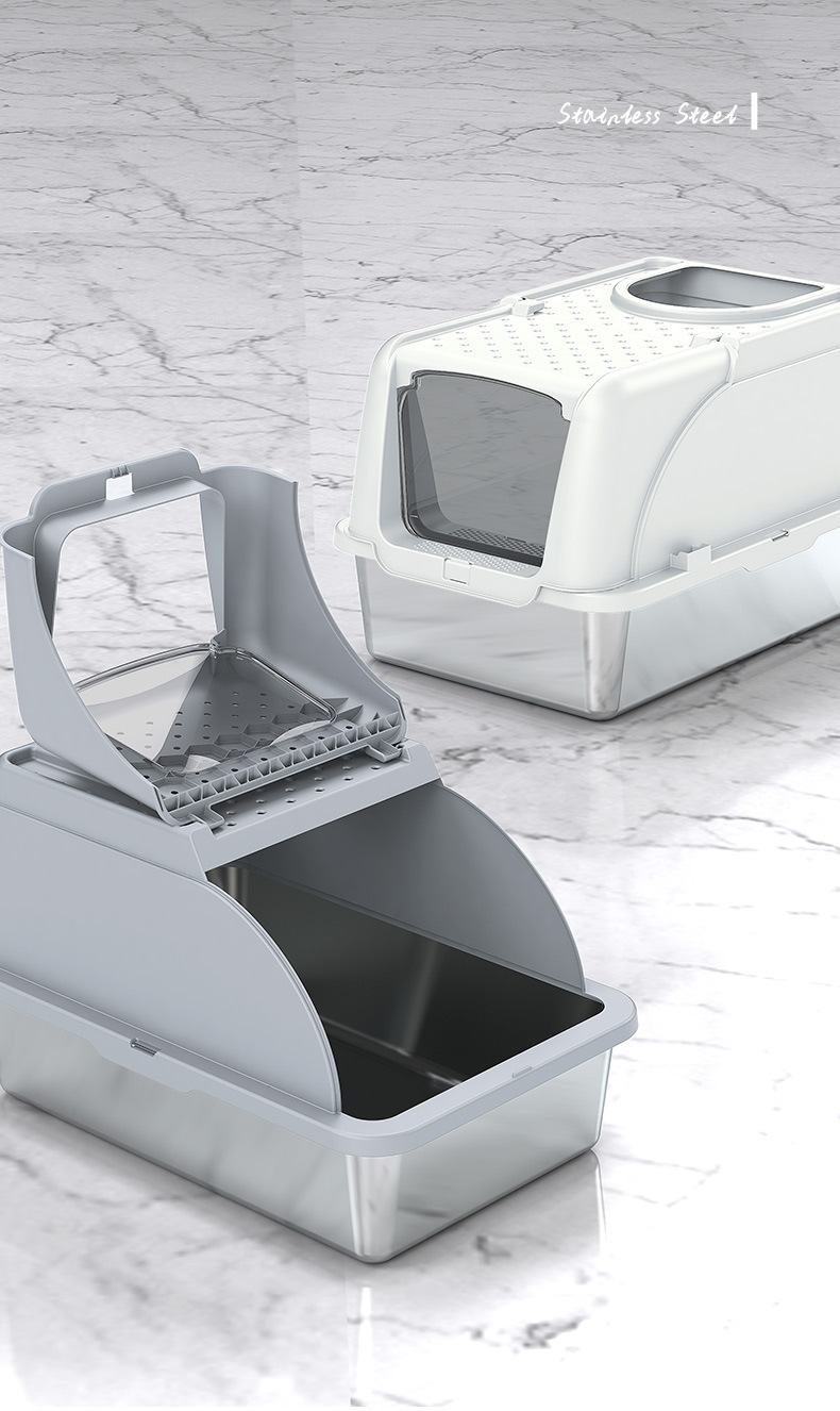 Miaohe acero inoxidable transfronterizo lavabo de arena para gatos con tapa invertida anti-derrames anti-contaminación fondo alto para mascotas totalmente cerrado inodoro para gatos