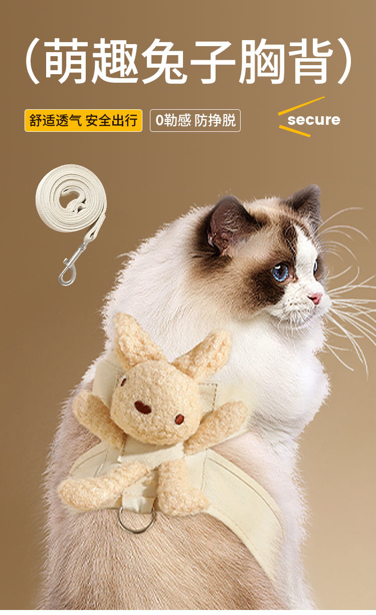 Cuerda de tracción para gatos, conejito de peluche, mascotas al aire libre, pecho, espalda, tracción para gatos, cadena para gatos, cuerda para gatos, suministros para mascotas al por mayor