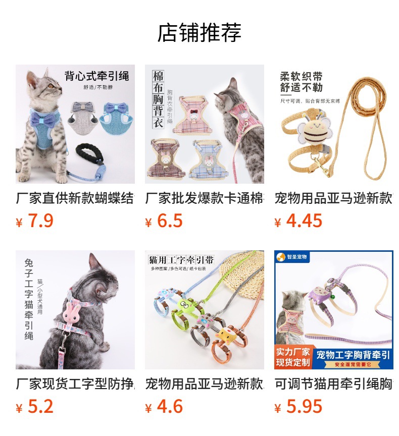 Suministros para mascotas nuevo estilo cuerda de tracción para gatos correa para el pecho en forma de I mochila anti-caída cuerda para gatos de viento de hadas ajustable