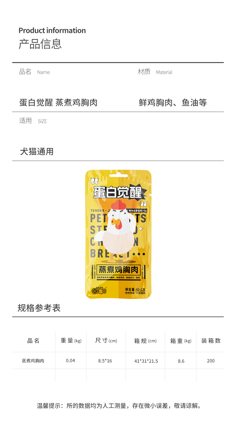 Pechuga de pollo hervida para mascotas, bocadillos para gatos, pechuga de pollo, alimentos húmedos, tiras de pollo al vapor, comida instantánea para perros, suministros para mascotas