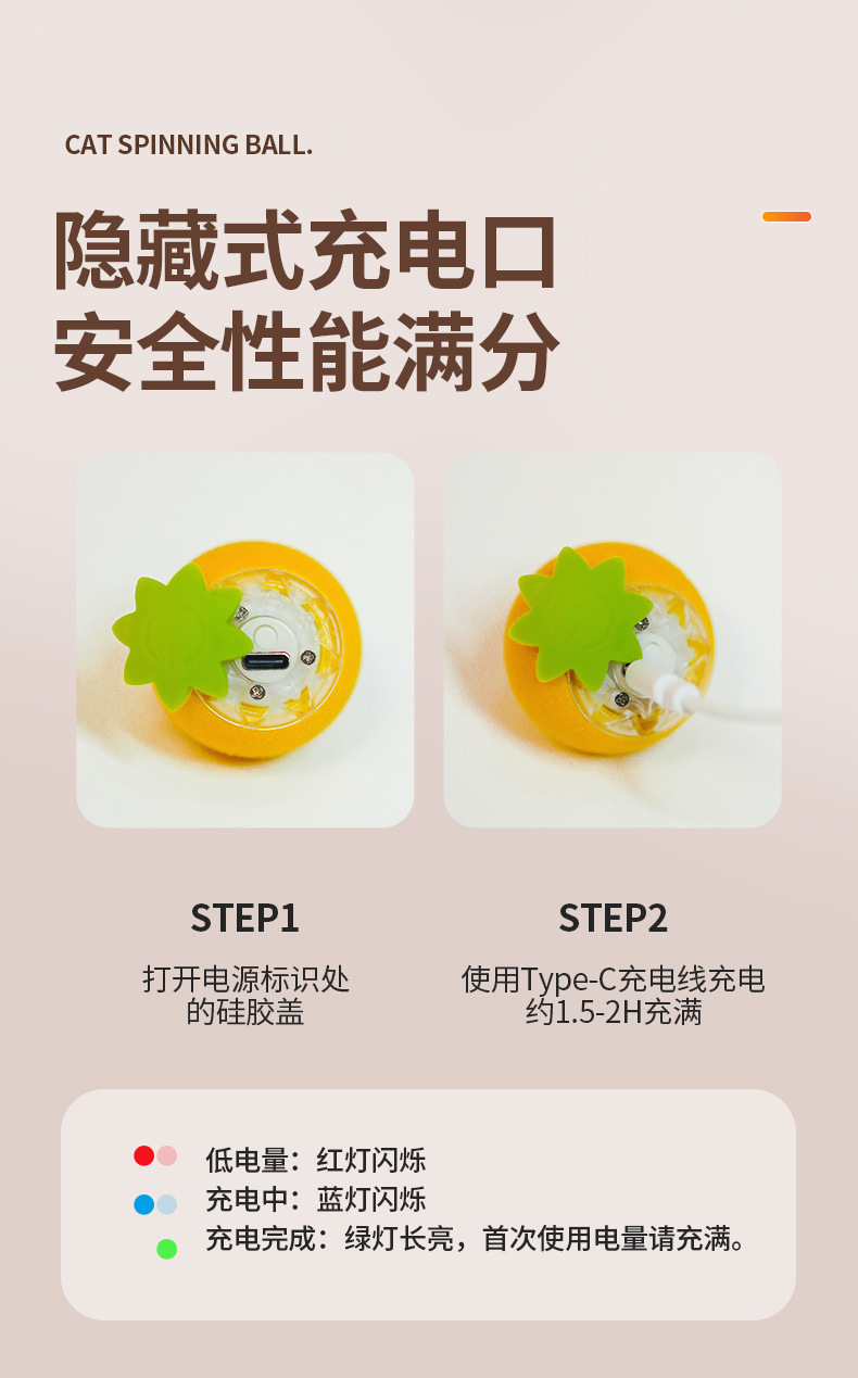 Forma de naranja transfronteriza, bola rodante gravitacional inteligente, gato, auto-hola, resistente a morder y aliviar el aburrimiento, bola de giro automático, suministros para mascotas