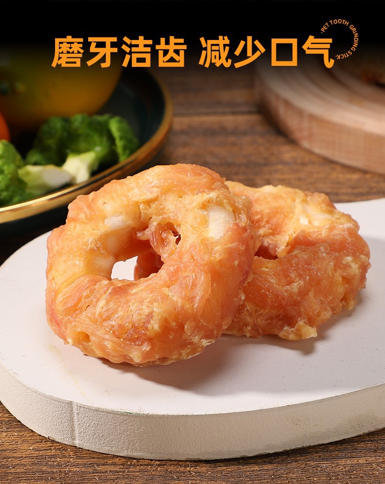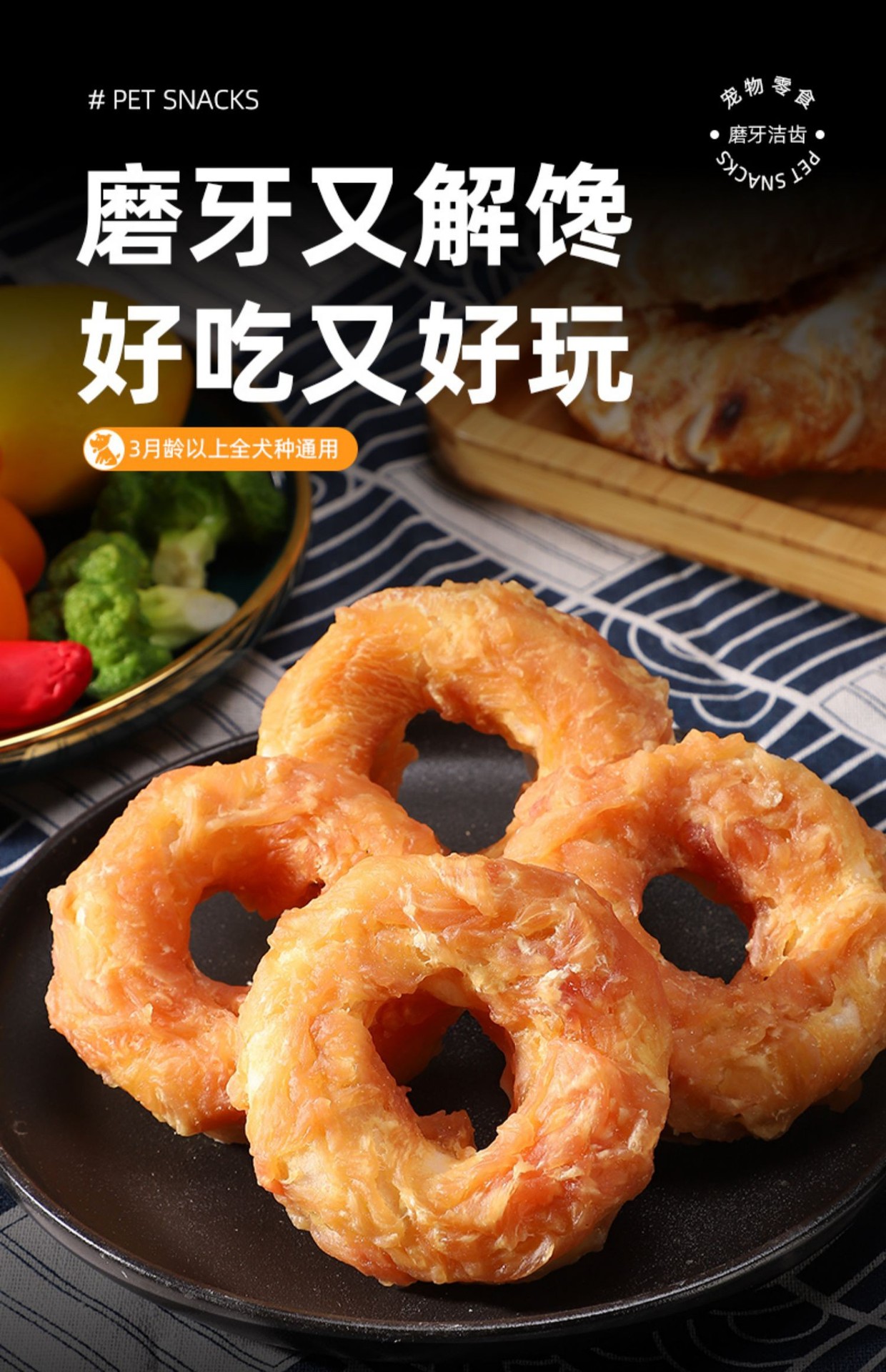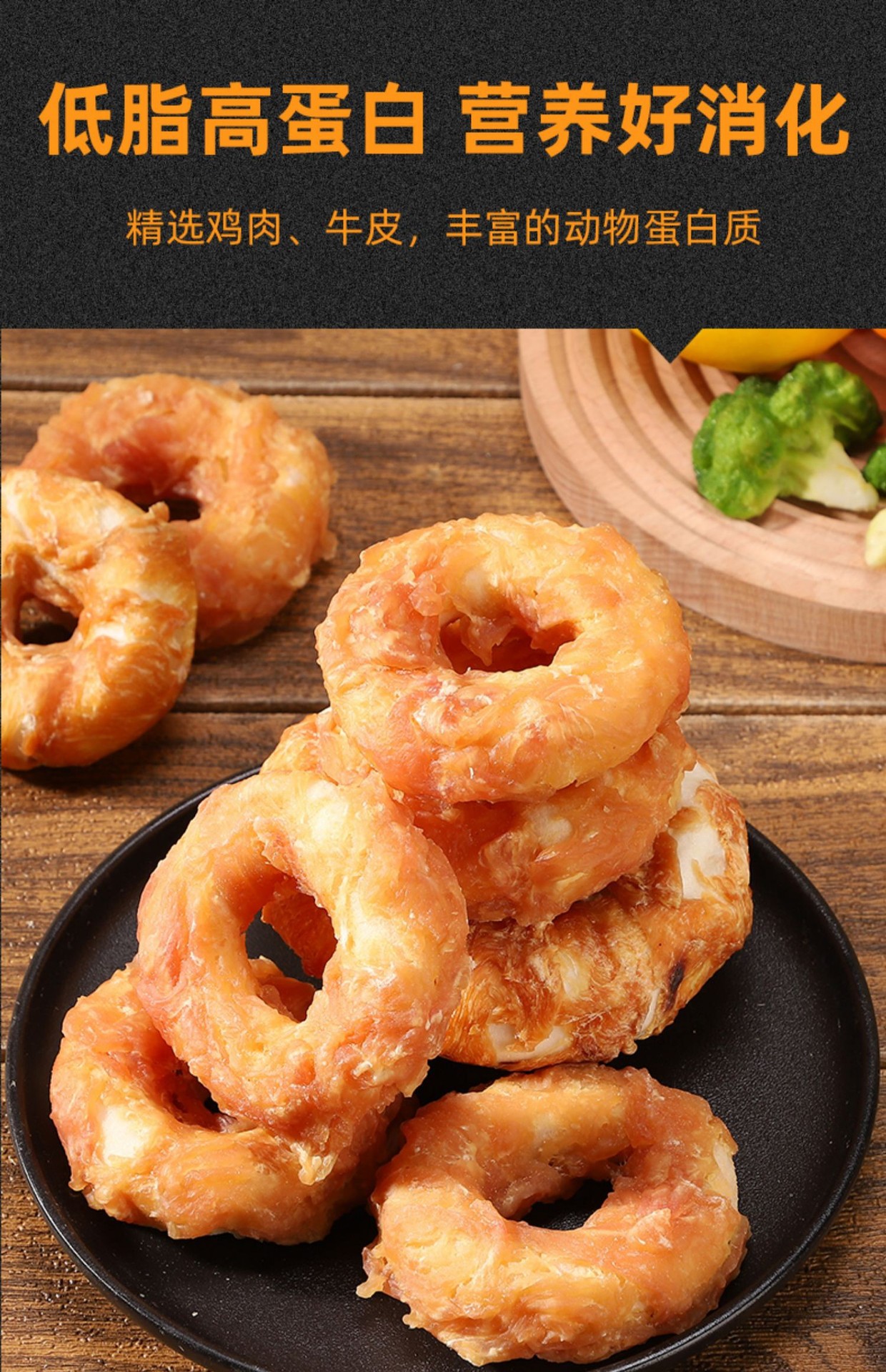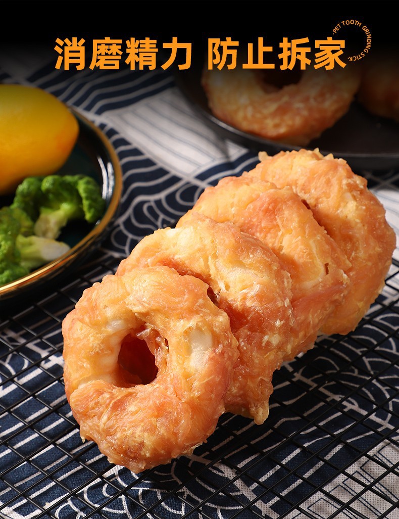 Aperitivos para perros, palitos molares, rosquillas de piel de vaca de pollo, perros grandes y pequeños, mascotas golden retriever, peluche, bocadillos de limpieza resistentes a las mordeduras