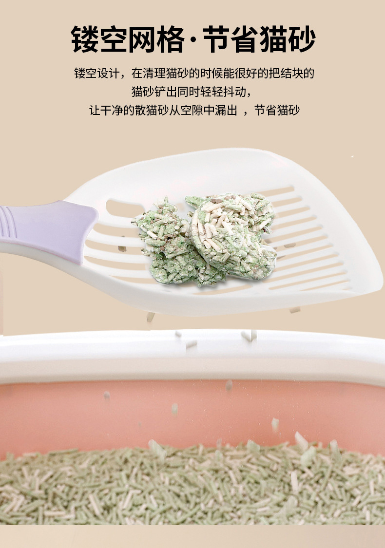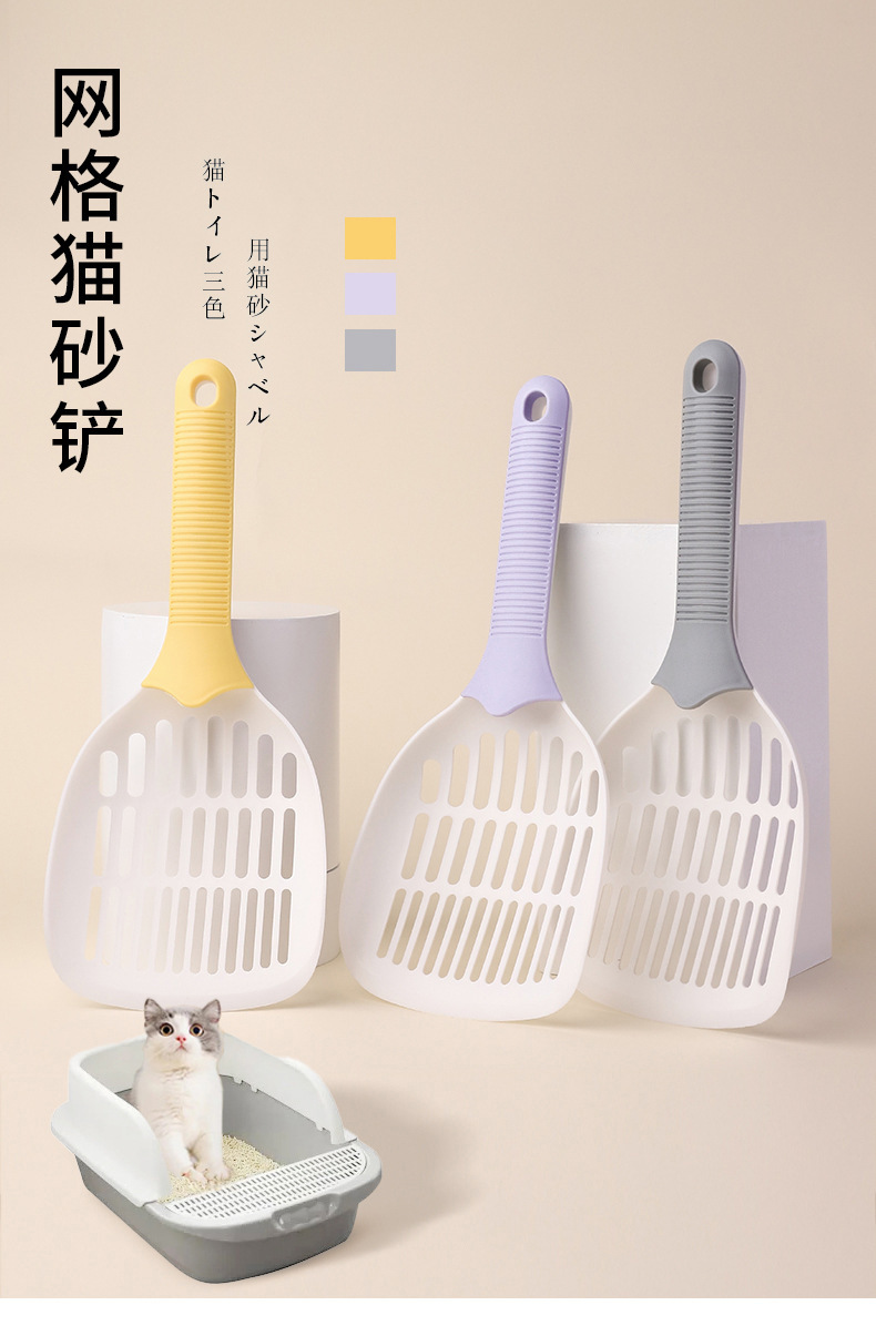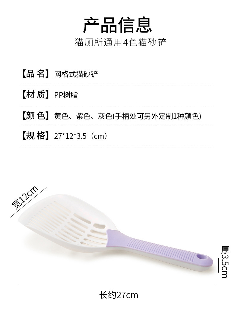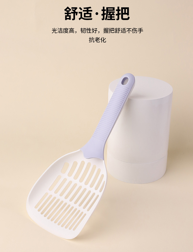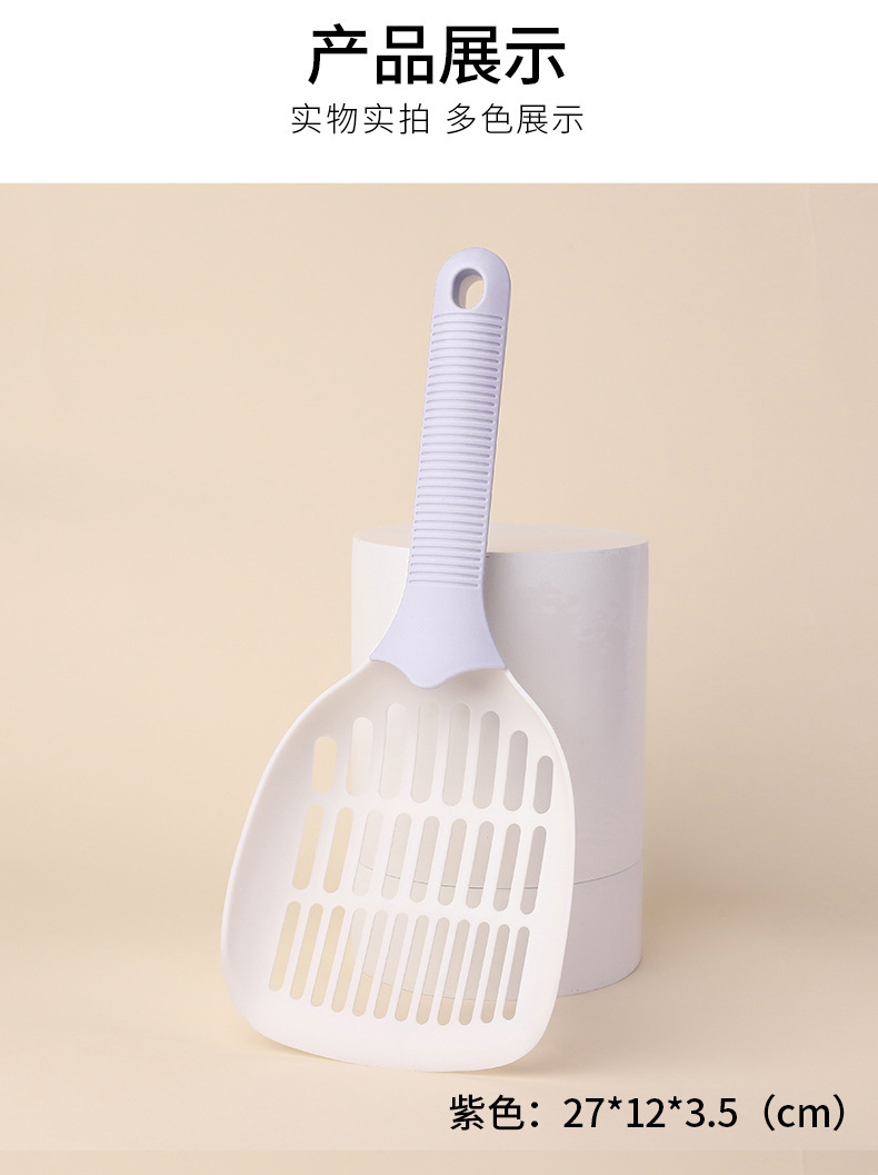 Nuevos fabricantes al por mayor de color púrpura de barro de tarato simple tipo hueco gato grande es una pala de mango largo agujero de arena para gatos