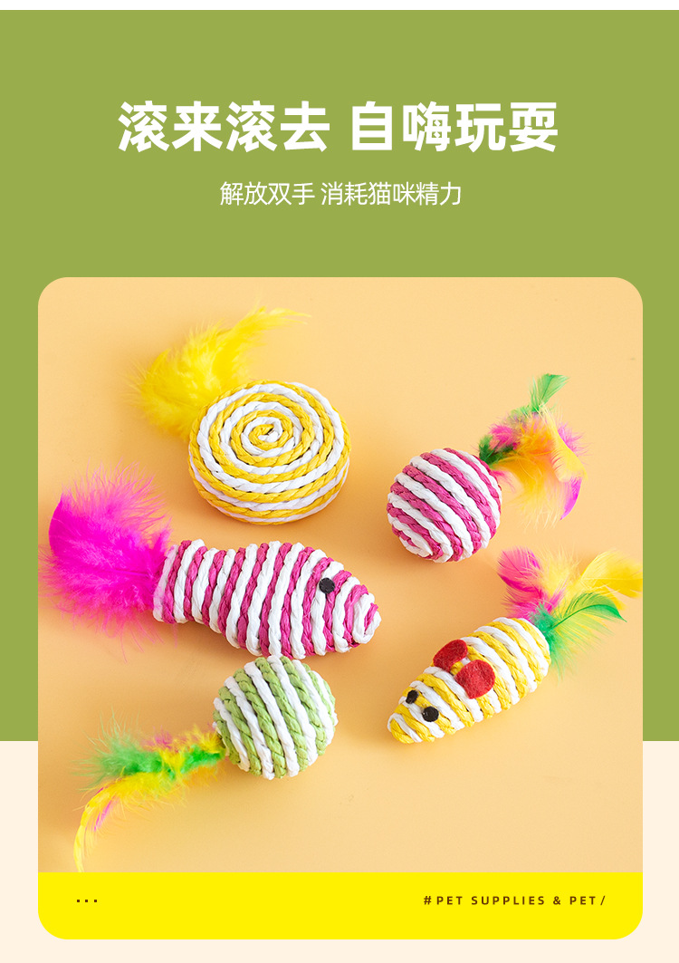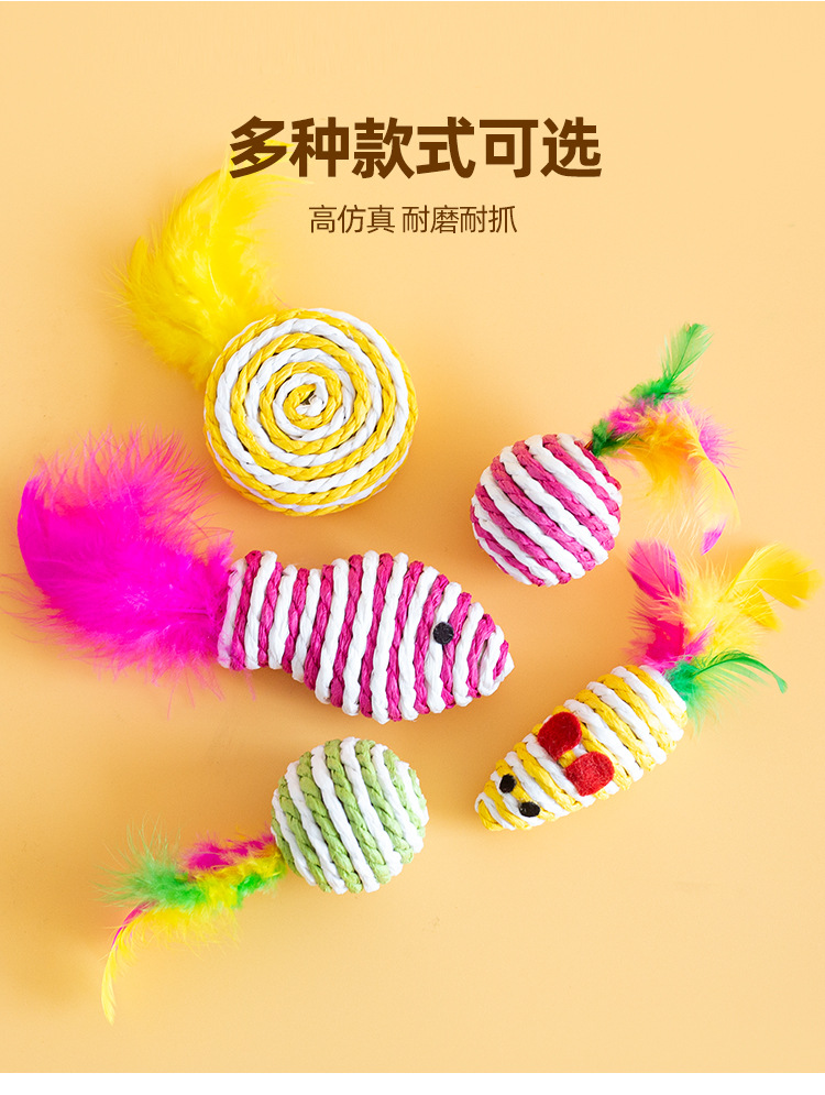 Nuevos juguetes para gatos, bolas de cuerda de papel, plumas de ratón, alivia el aburrimiento