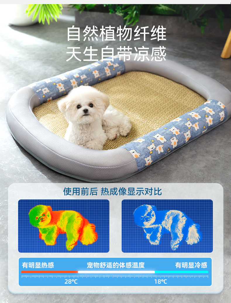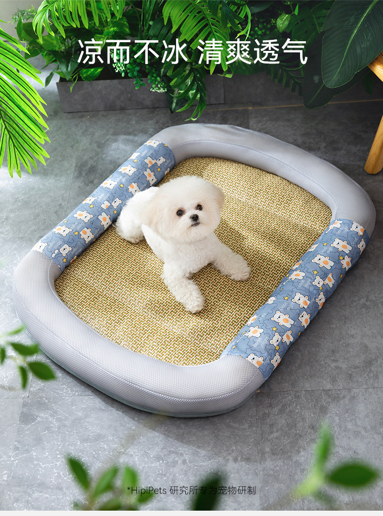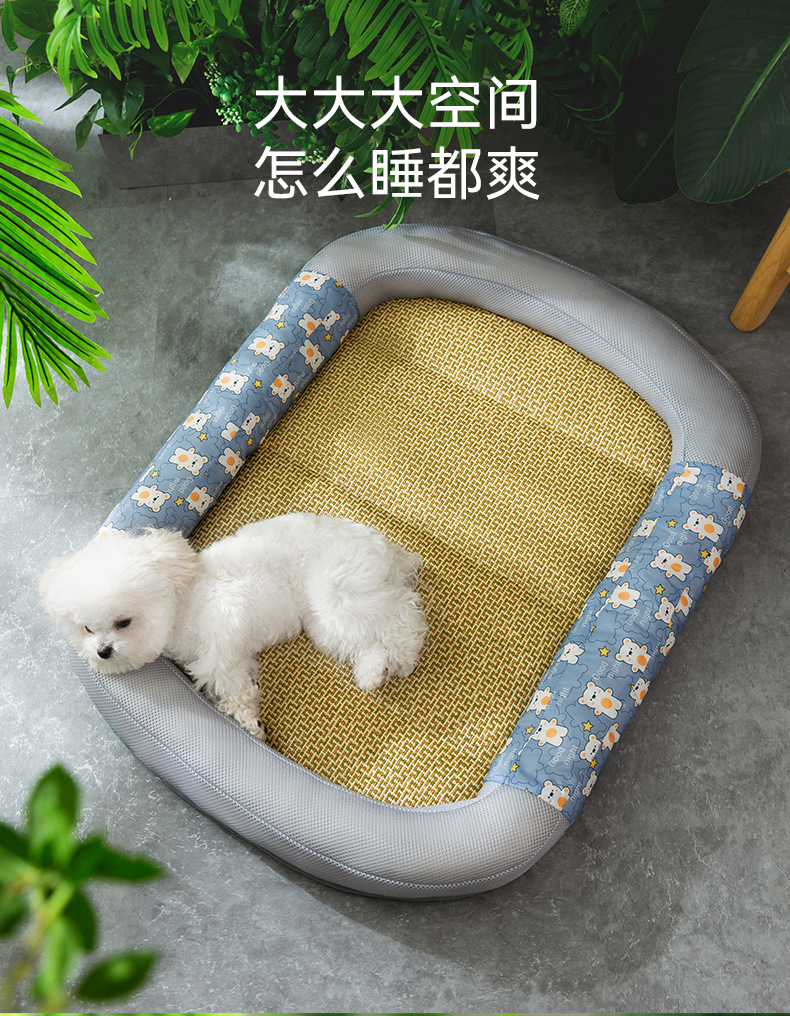La primavera y el verano perro de dibujos animados oso Oval estera de verano Teddy perrera gato nido mediano y pequeño perro mascota estera nido