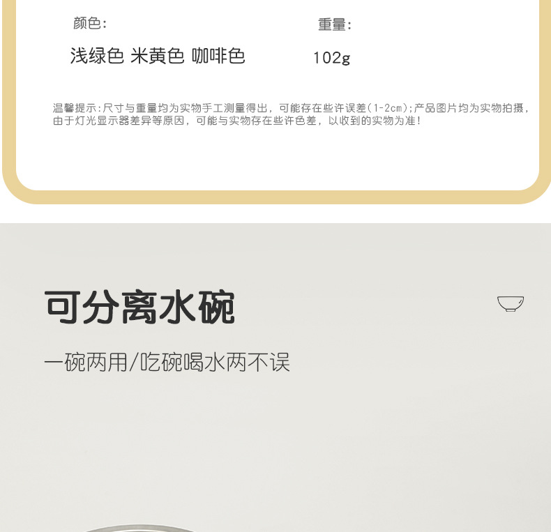 | Especificaciones | Beige, verde claro, beige + tazón de acero inoxidable, verde claro + tazón de acero inoxidable |