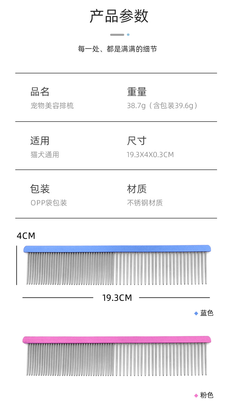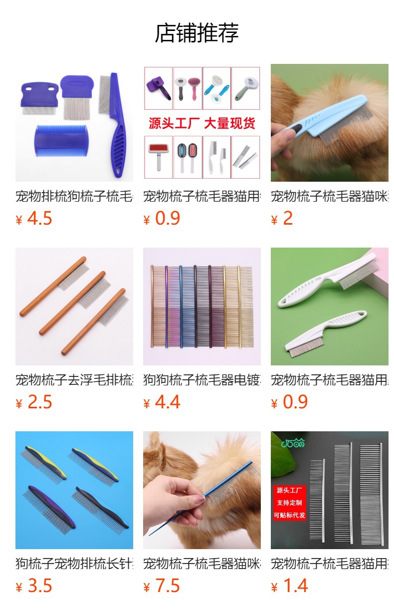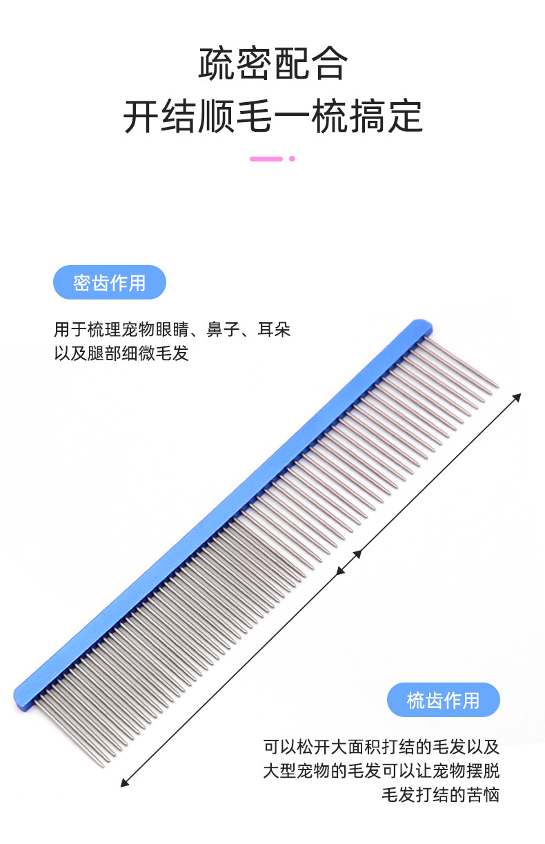 Pet peine de acero inoxidable perro belleza peine recto flotante cifrado de pelo piojos peine gato suministros al por mayor