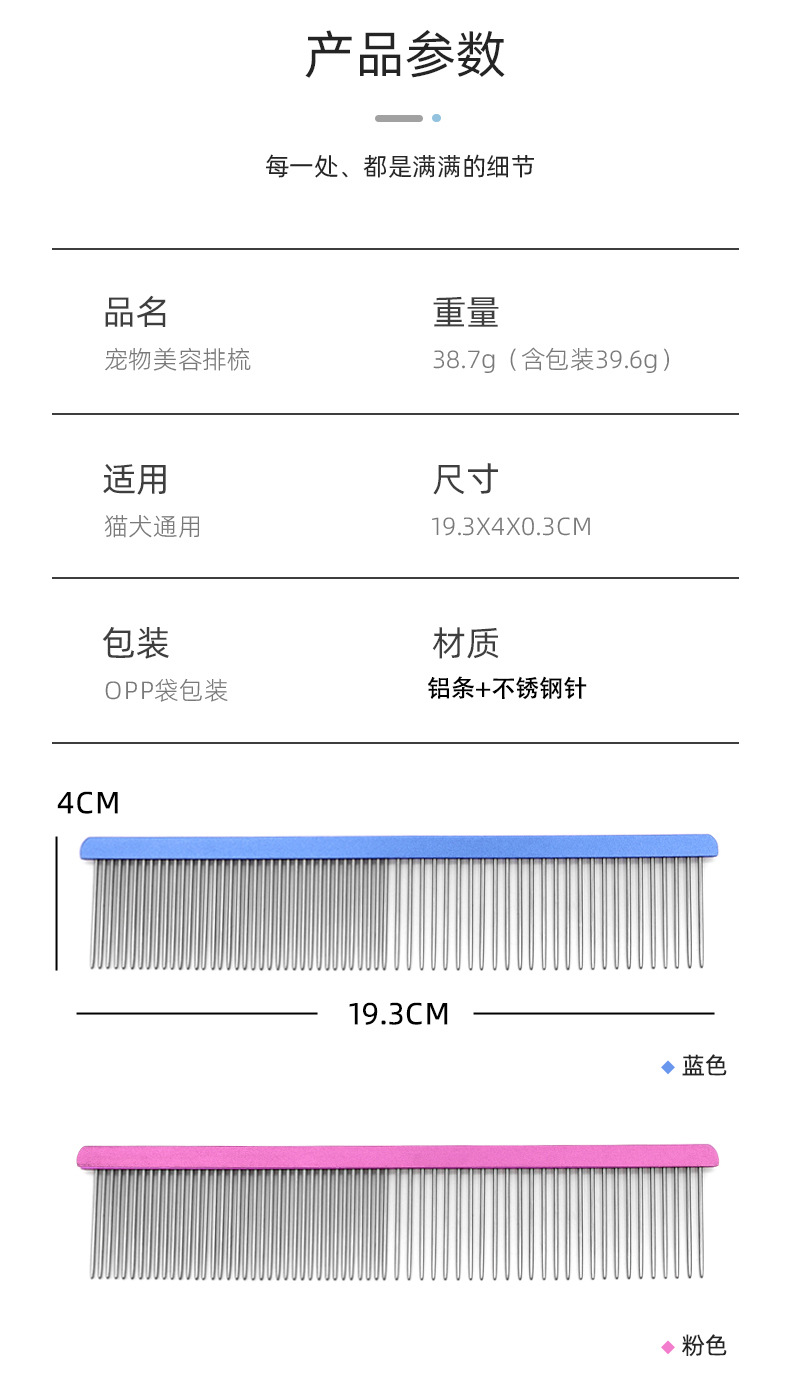 Peine para mascotas de acero inoxidable, peine de aseo para perros y gatos, herramienta para eliminar el pelo, suministros para peines de gatos.