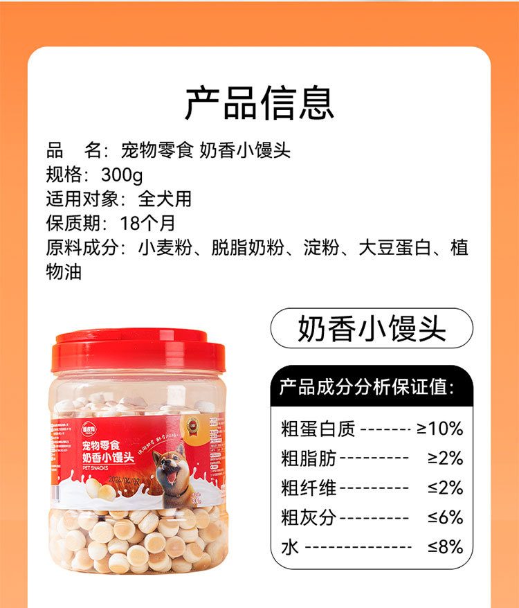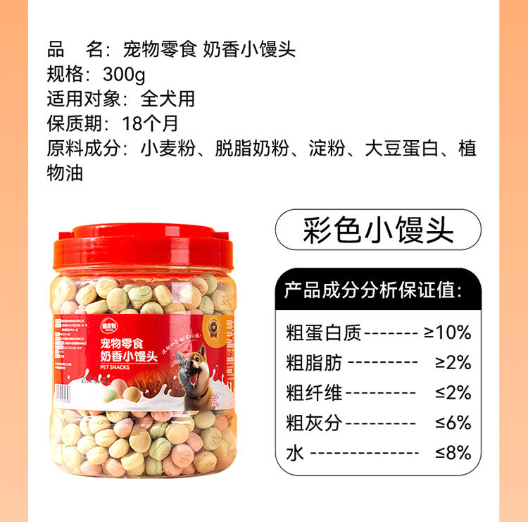 | Especificaciones | Bollo al vapor con sabor a leche 300g,Bollos de color pequeños al vapor 300g,Galletas de hueso con sabor a leche 450g,Galletas lechosas 450g,Bollos al vapor con sabor a leche 120g,Galletas de leche de calcio 200g,Galletas matcha 200g,Galletas de leche 90g,Bollo al vapor con sabor a leche 90g |