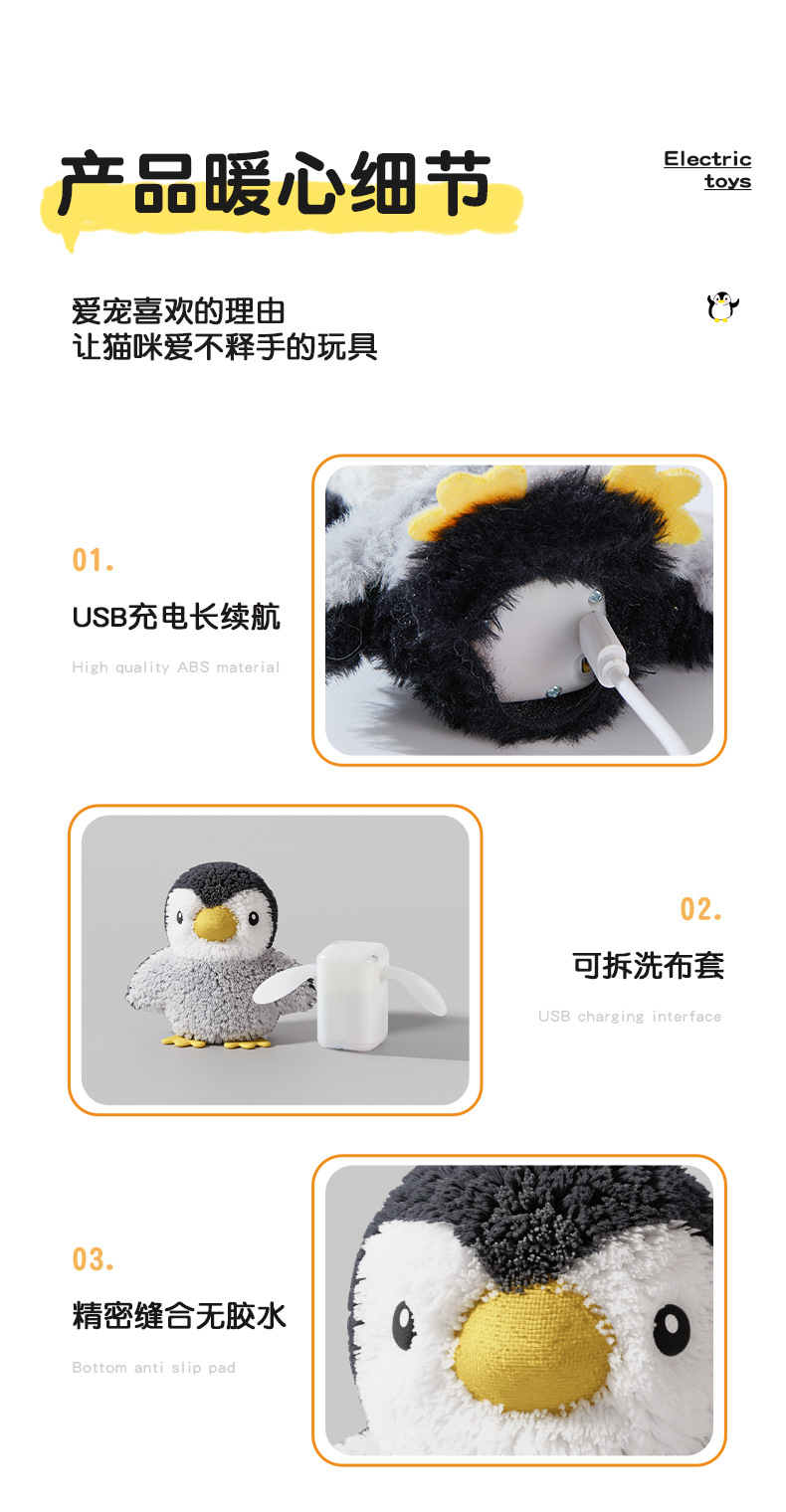 Linda caricatura eléctrica pingüino peluche de juguete para gato muñeca búho muñeca gato autosonido juguete para gato al por mayor