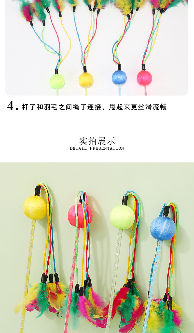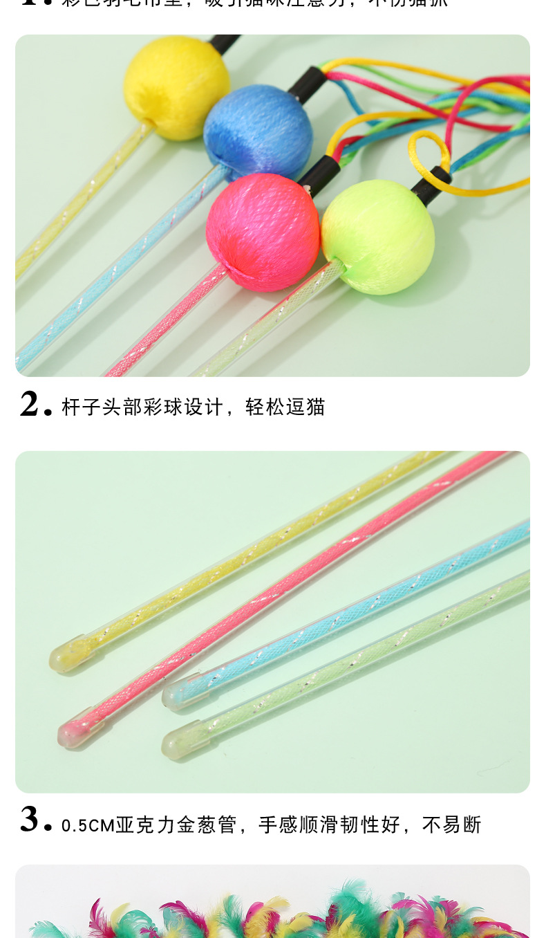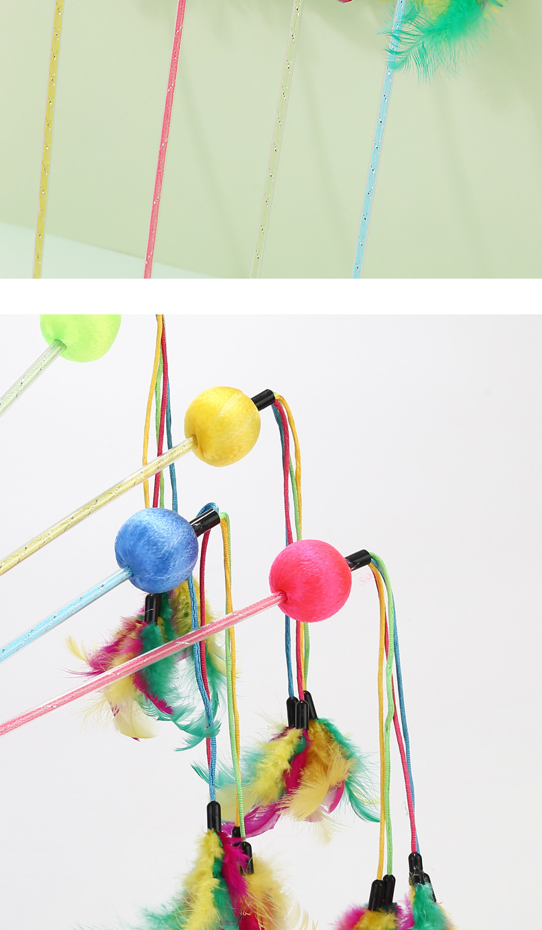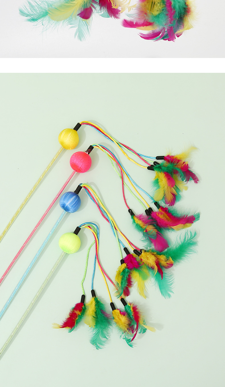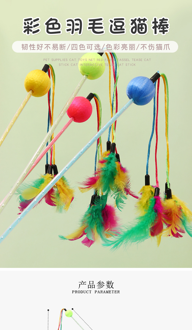 Fabricante en stock nueva bola colorida multi-pluma divertido gato palo auto-Hola interactivo divertido gato juguete pluma divertido gato palo al por mayor
