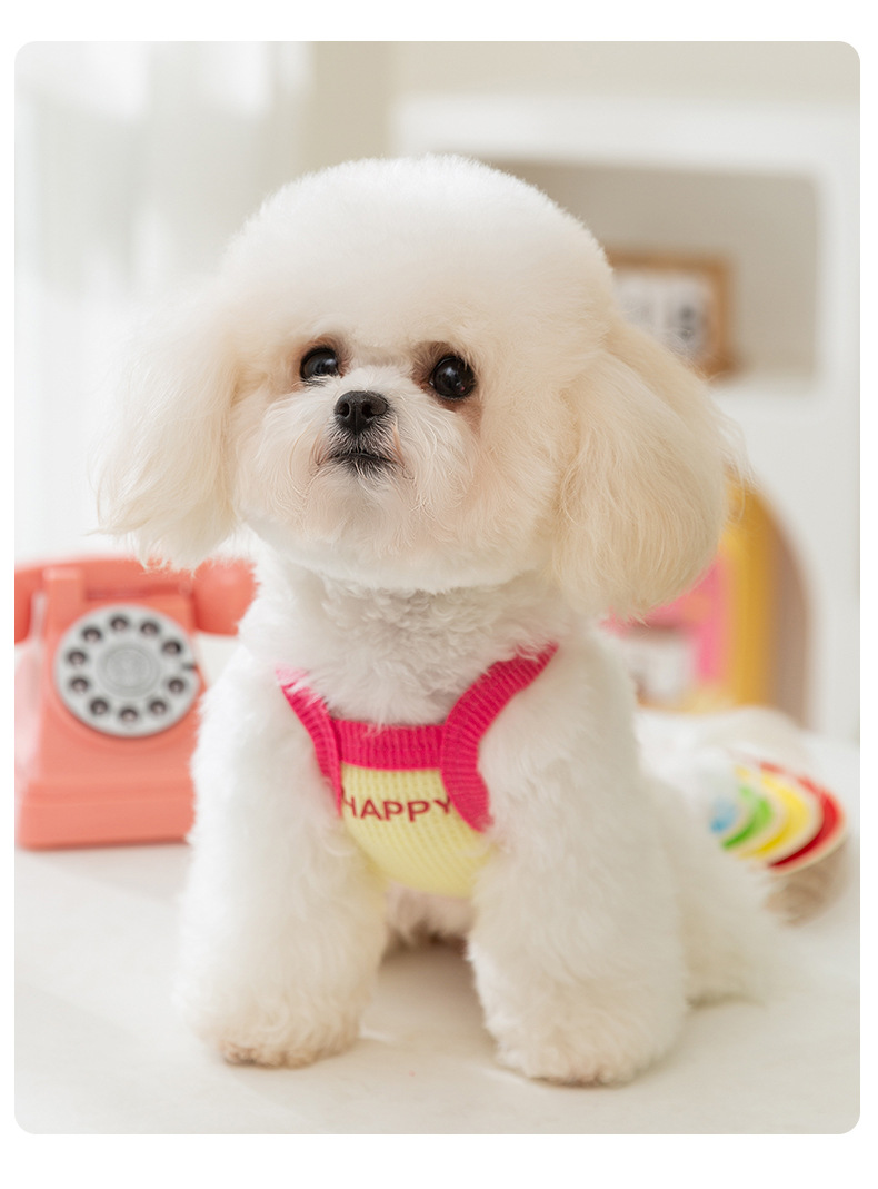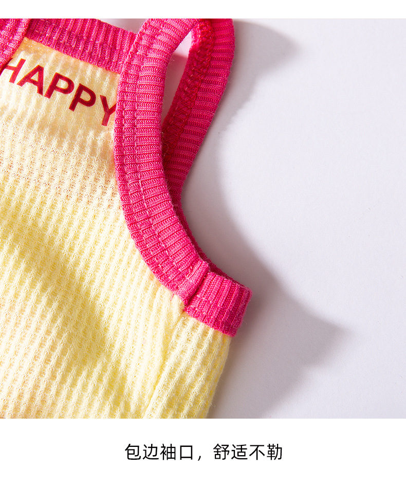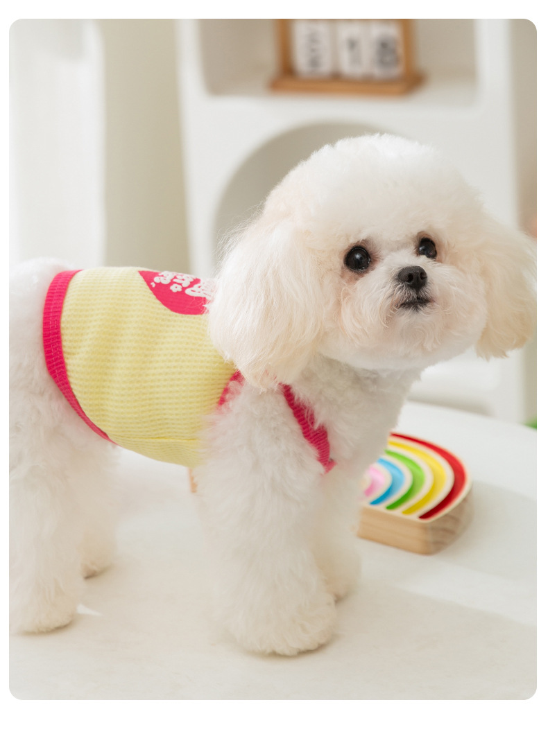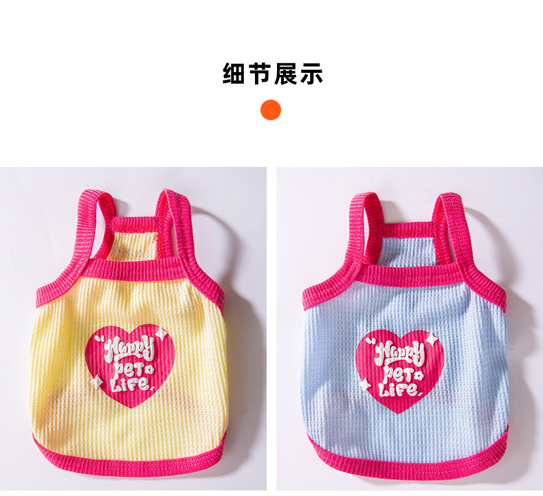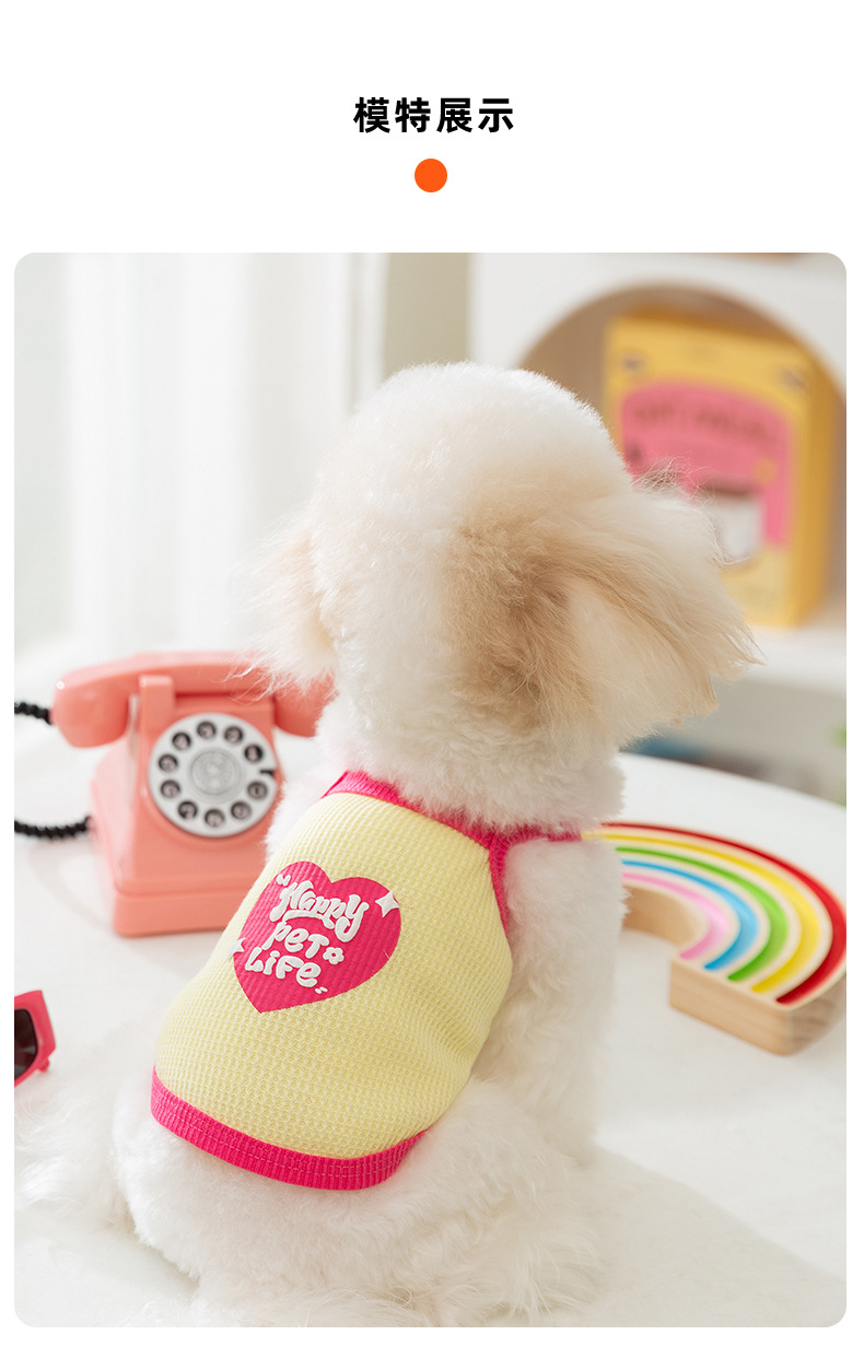 Primavera y verano perro estilo casual feliz cachorro vida amor waffle color de contraste tirantes gato mascota perro ropa