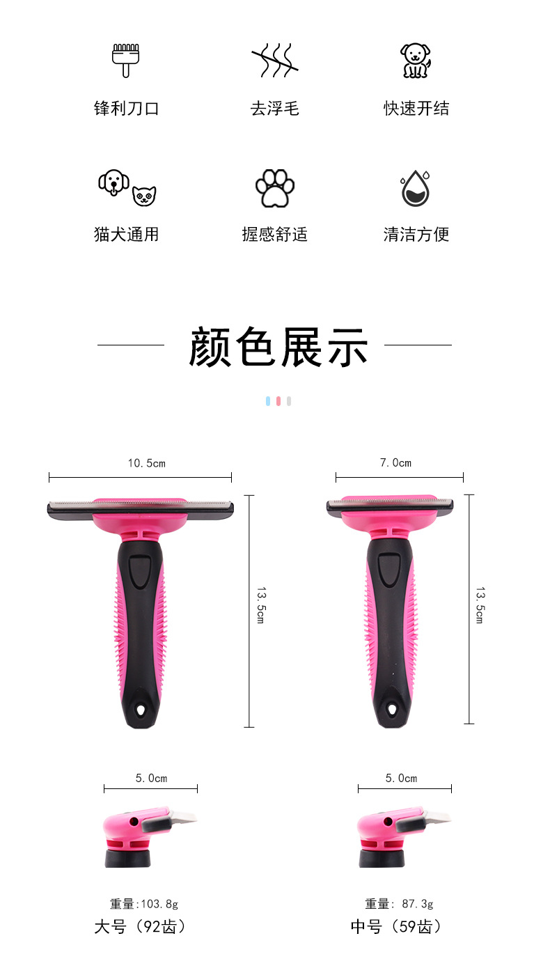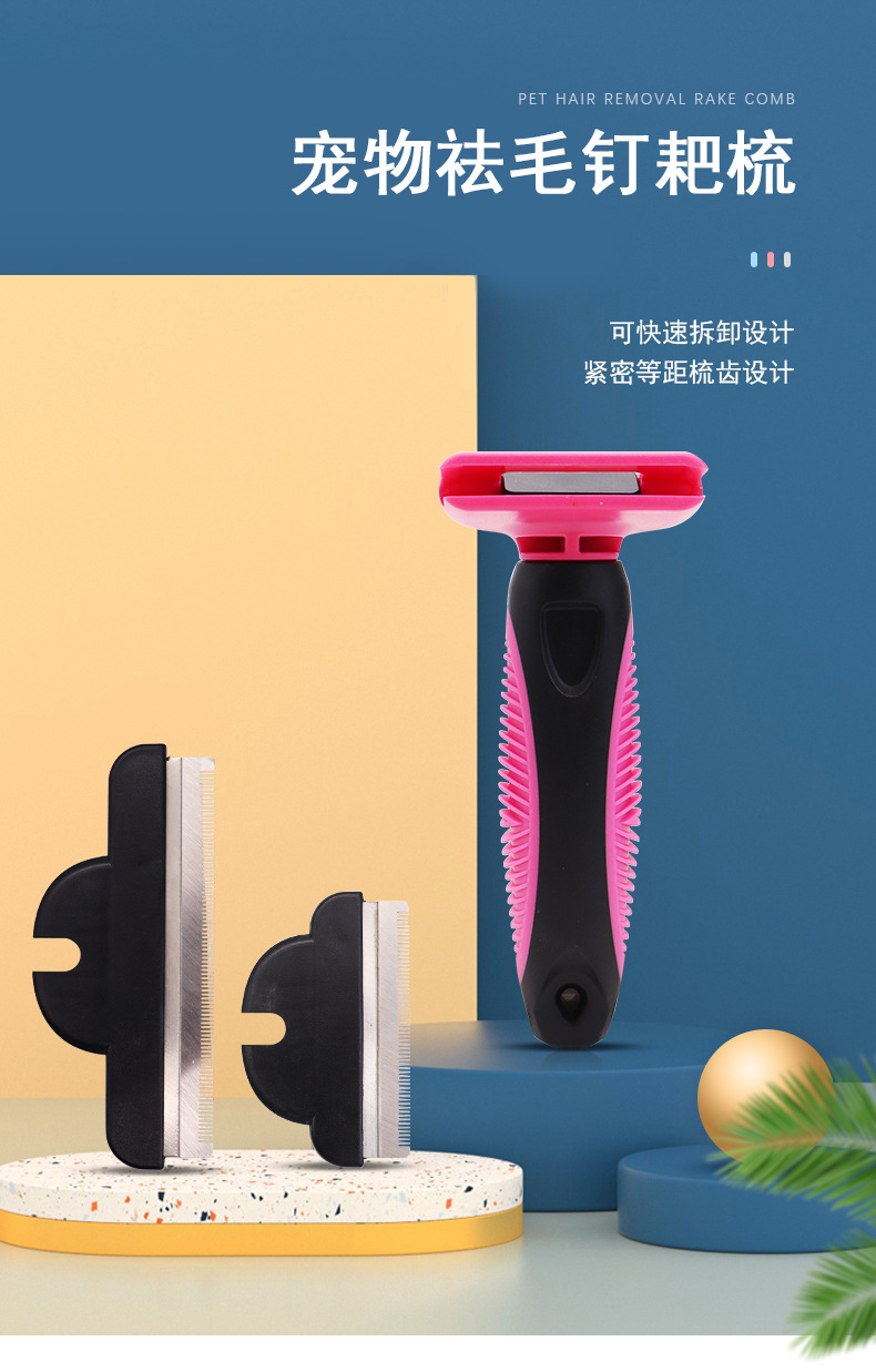Amazon PET depilación limpieza suministros perro depilación diente denso peine desmontable gato belleza peine al por mayor
