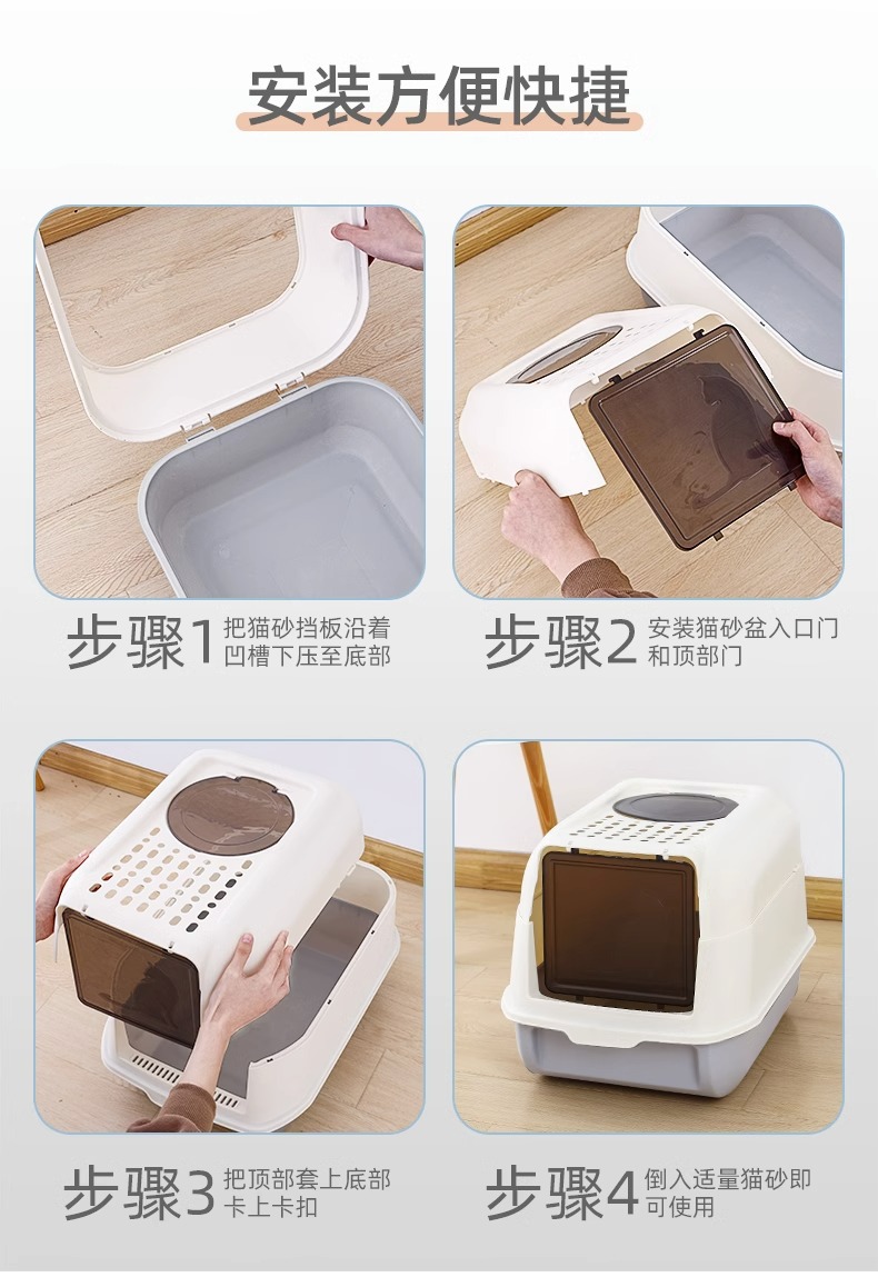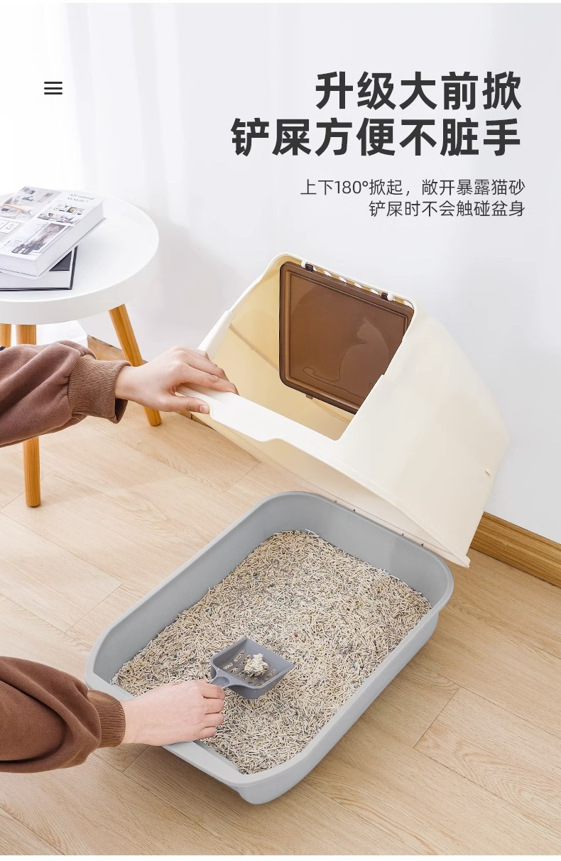 Venta al por mayor caja de arena para gatos grande completamente cerrada desodorante gato inodoro anti-Splash semi-cerrado caja de arena para gatos suministros para mascotas