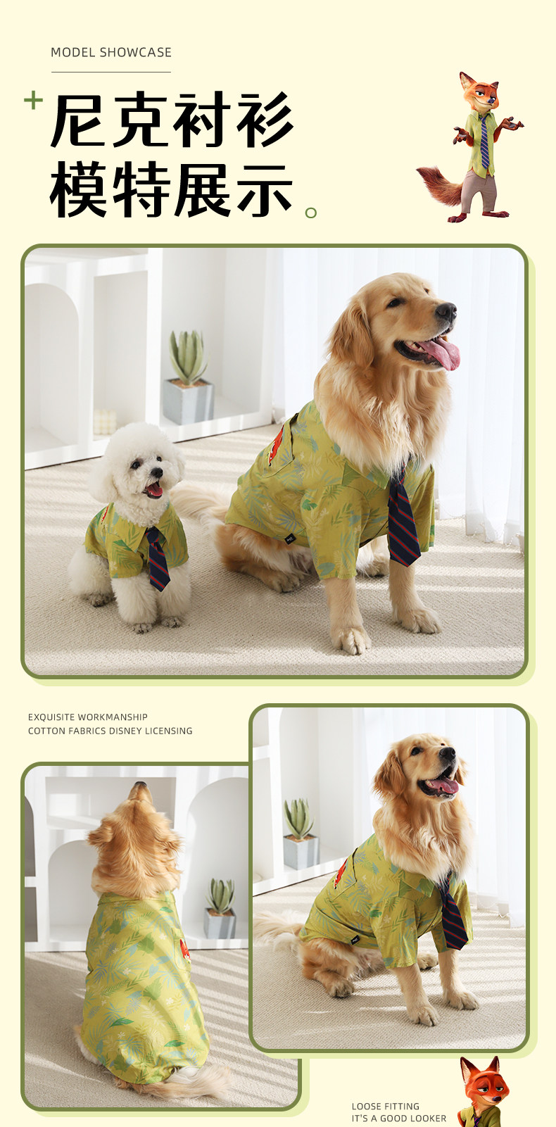 Disney Crazy Animal City Series Nick Pet Camisa Big Dog Summer Nick Fox misma ropa para perros