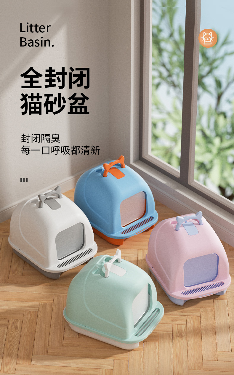 Fábrica caliente nuevo gran caja de arena para gatos completamente cerrada con pala de arena para gatos gato inodoro cerrado caja de arena para gatos al por mayor