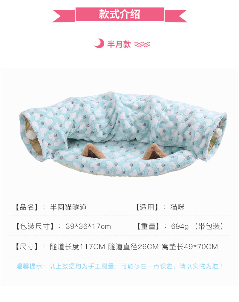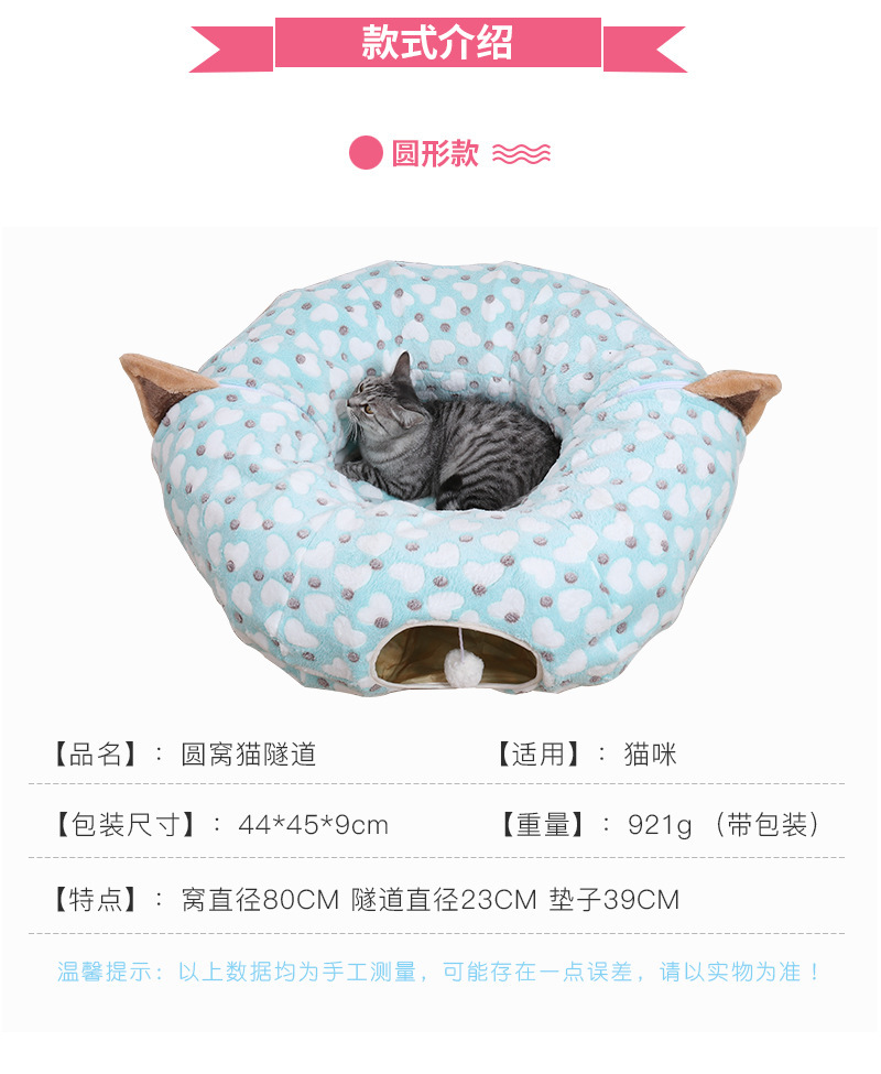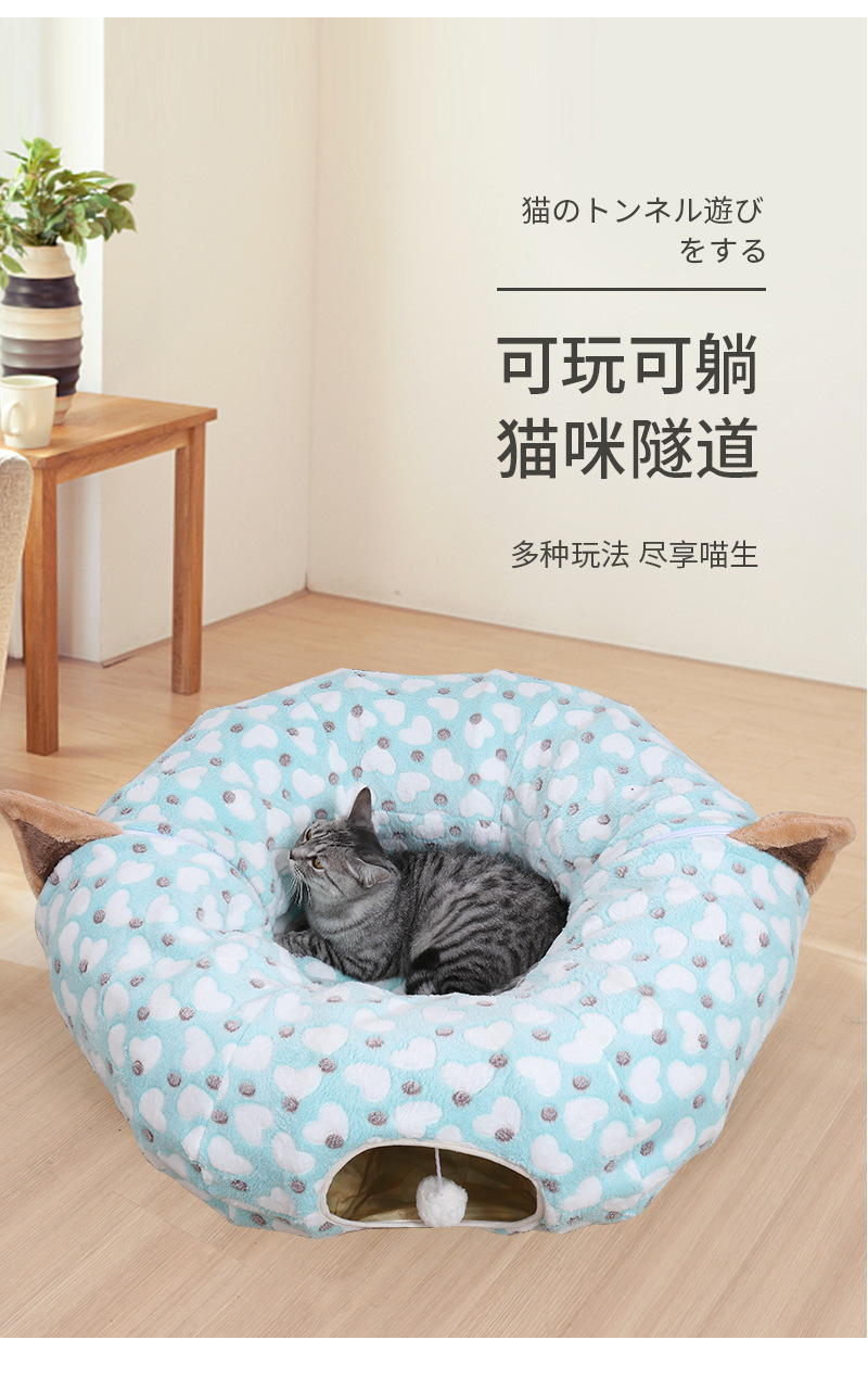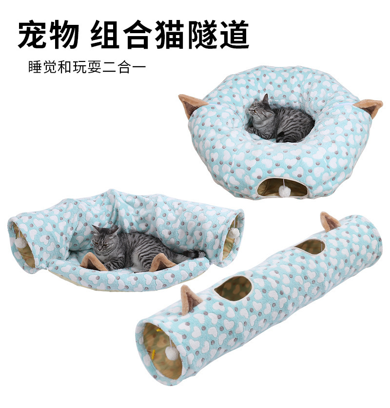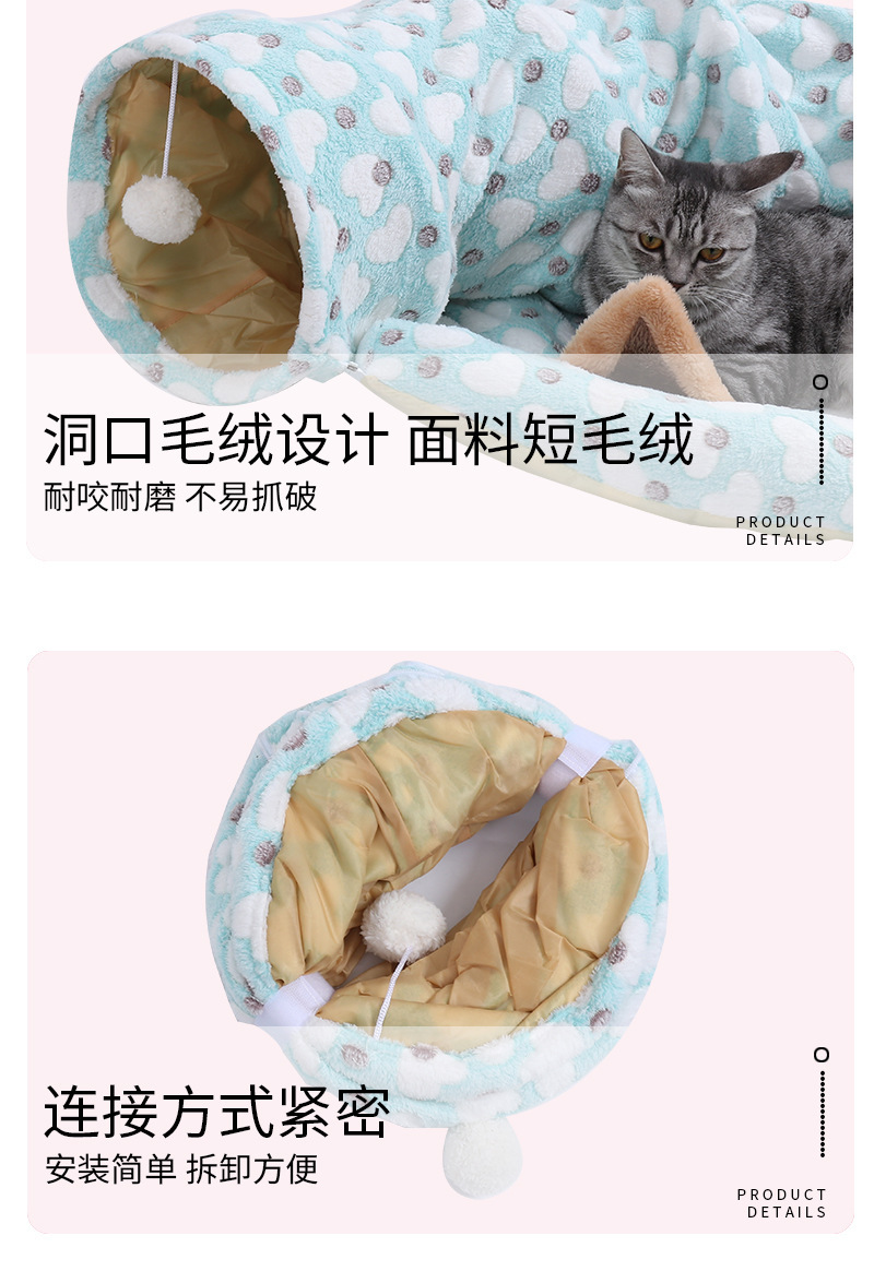 Fábrica al por mayor azul y blanco amor gato túnel gato nido canal resistente a los arañazos gato túnel nido auto-Hola gato juguete