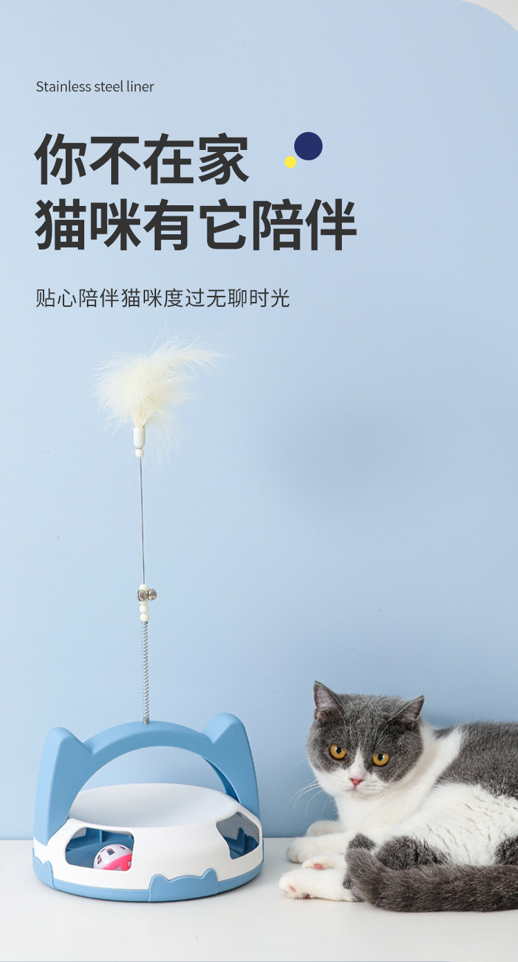 Nuevo juguete para mascotas gato auto-Hola Placa de entretenimiento desmontable resorte alambre de acero pluma divertido gato palo gato tocadiscos juguete