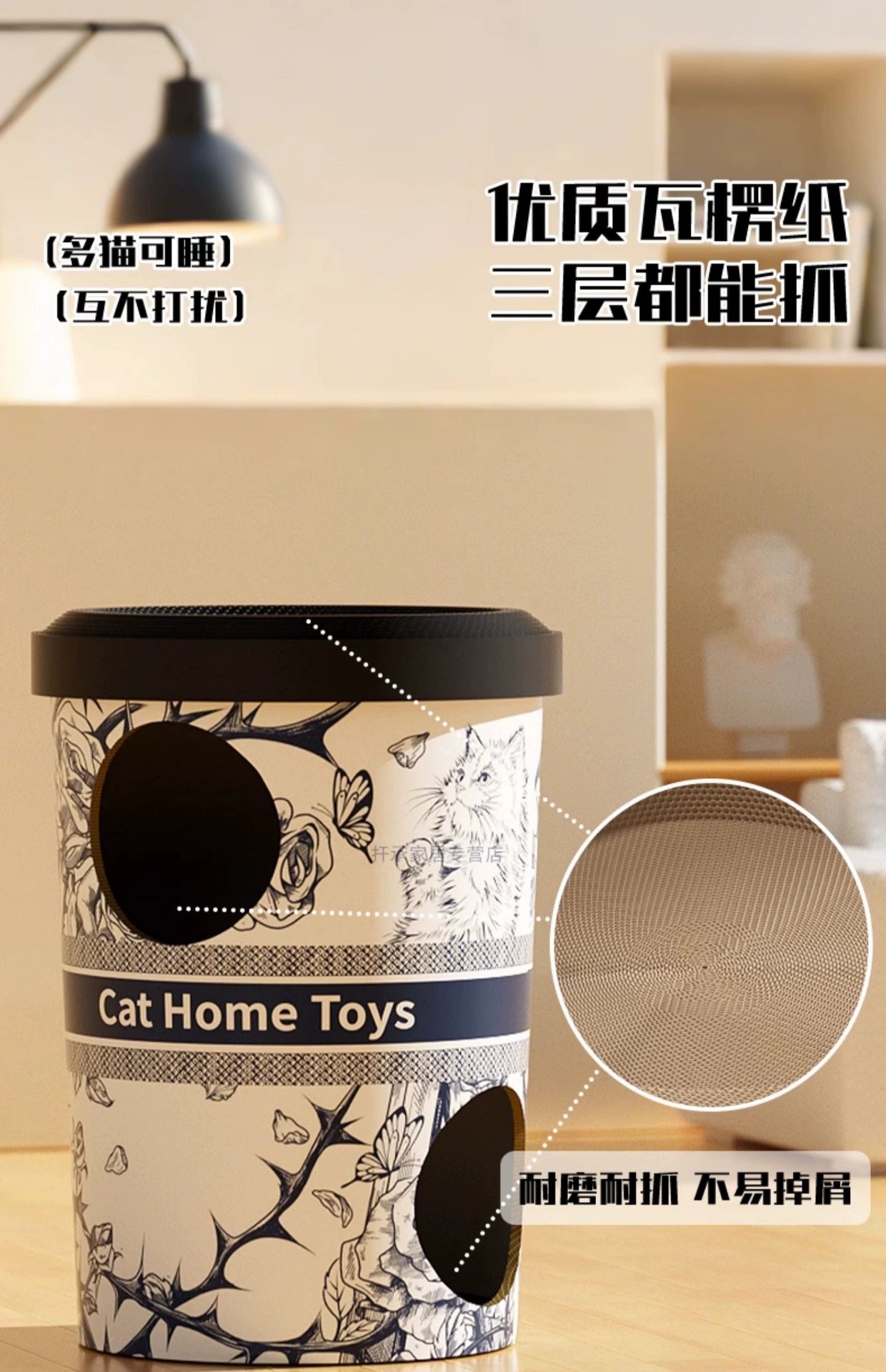Tablero para rascarse el gato, nido para gatos, villa para gatos de doble capa, taza de café, cubo de té con leche, papel corrugado resistente al desgaste, tablero de patas de gato, casa de refugio para gatos