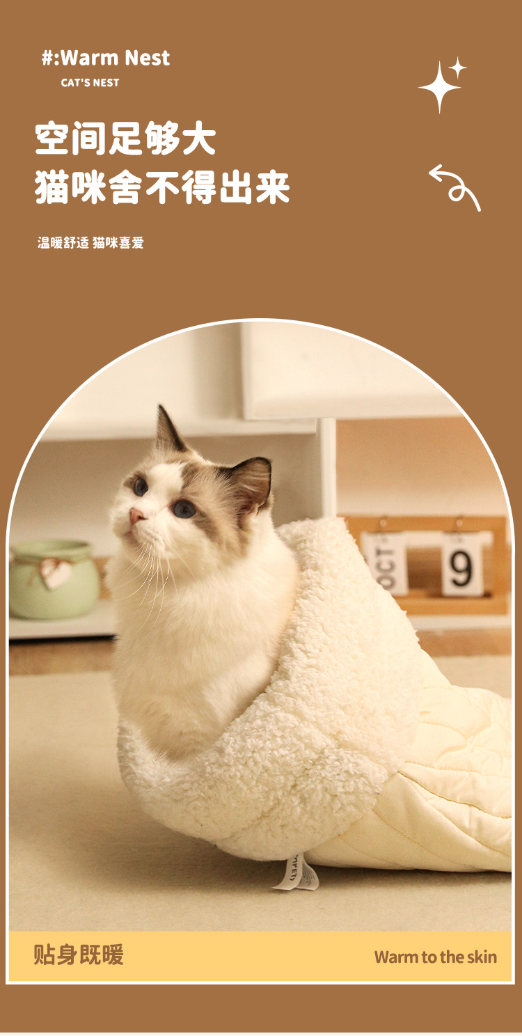 Cálido de otoño e invierno, saco de dormir, agujero de perforación, nido de gatito cerrado, seguridad, nido de perro, manta de perforación, suministros para mascotas al por mayor