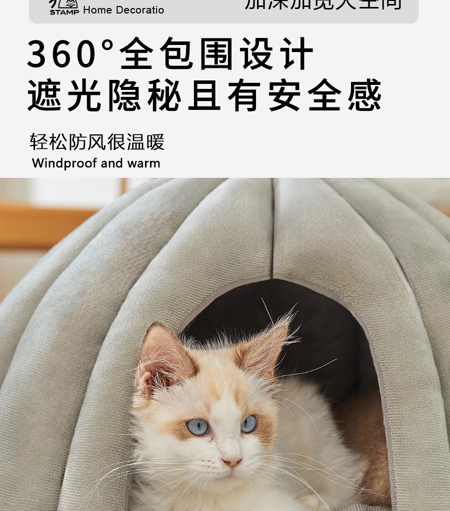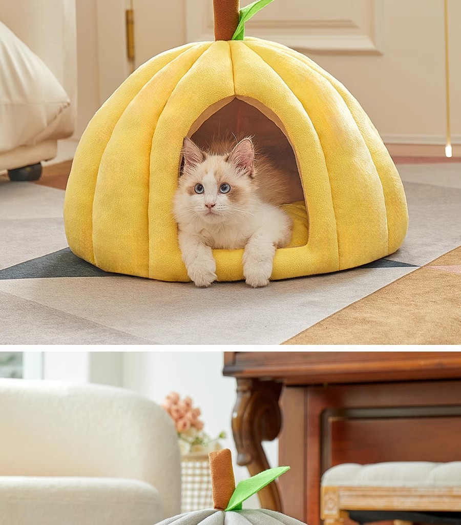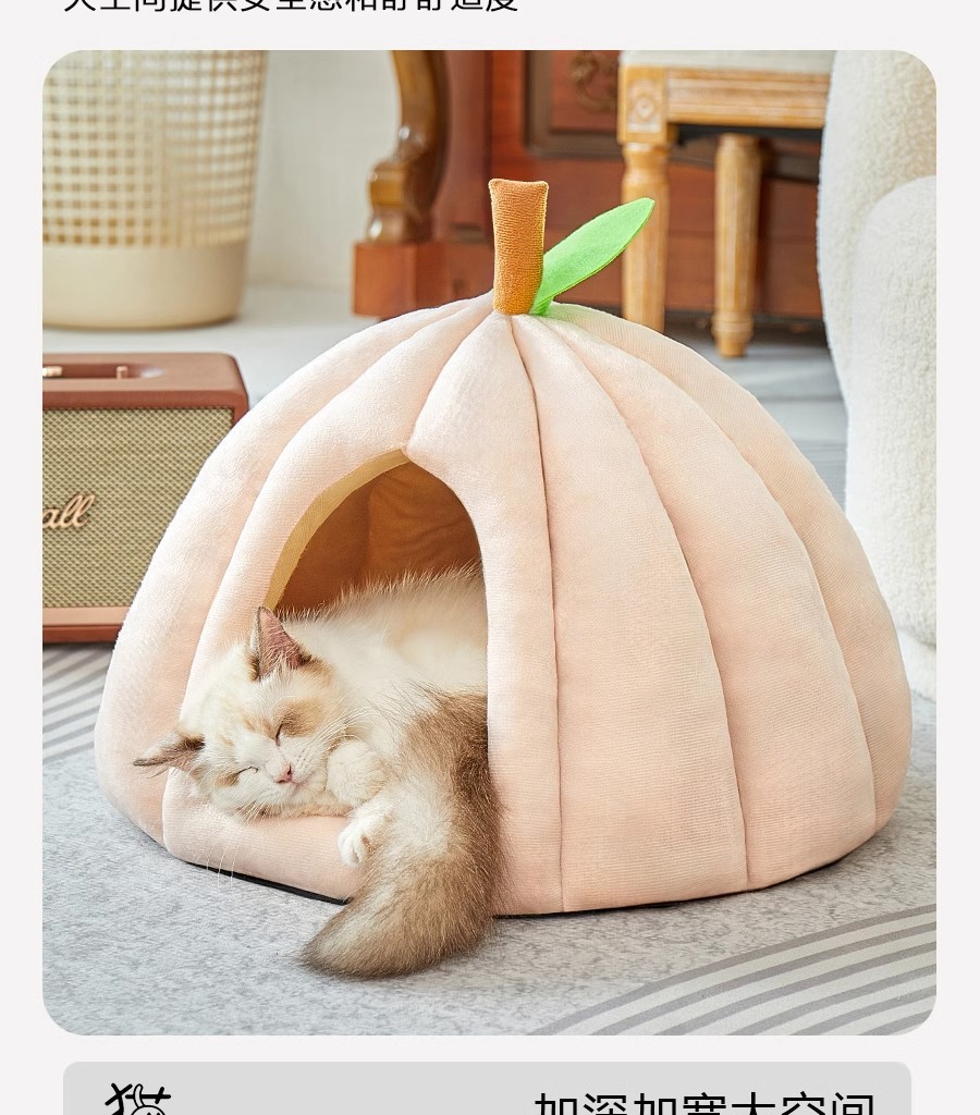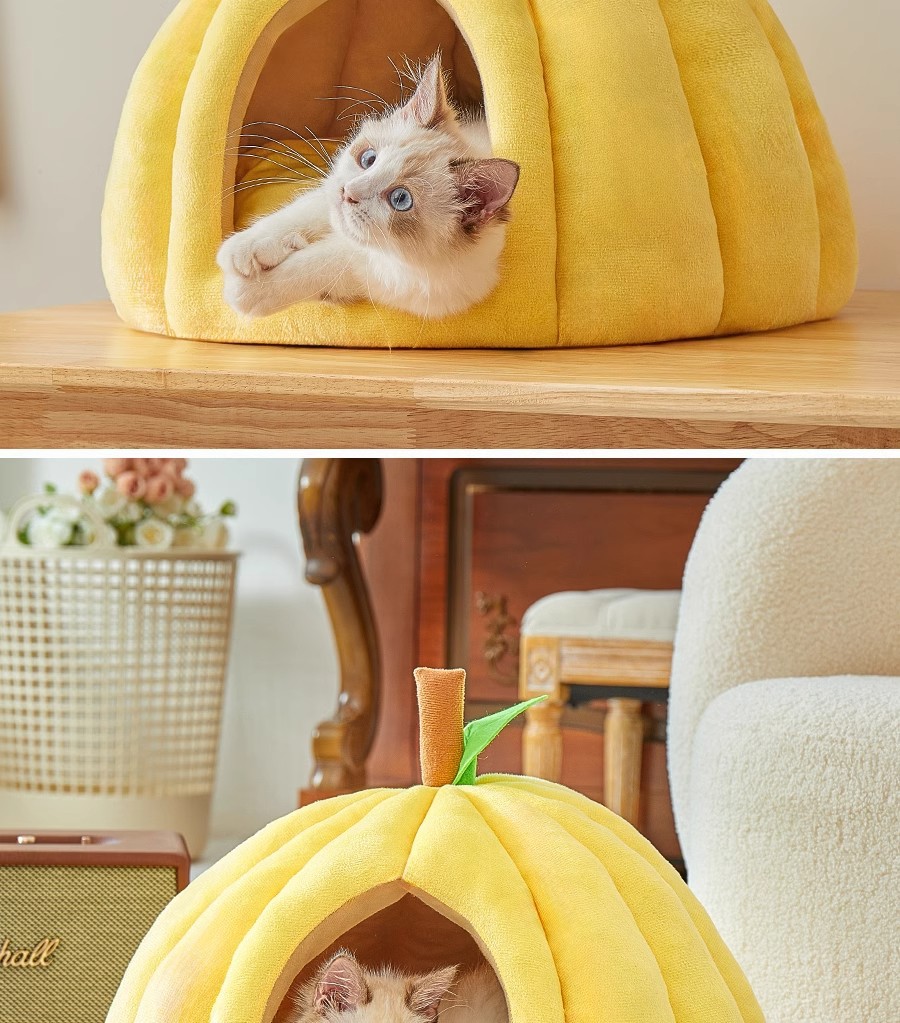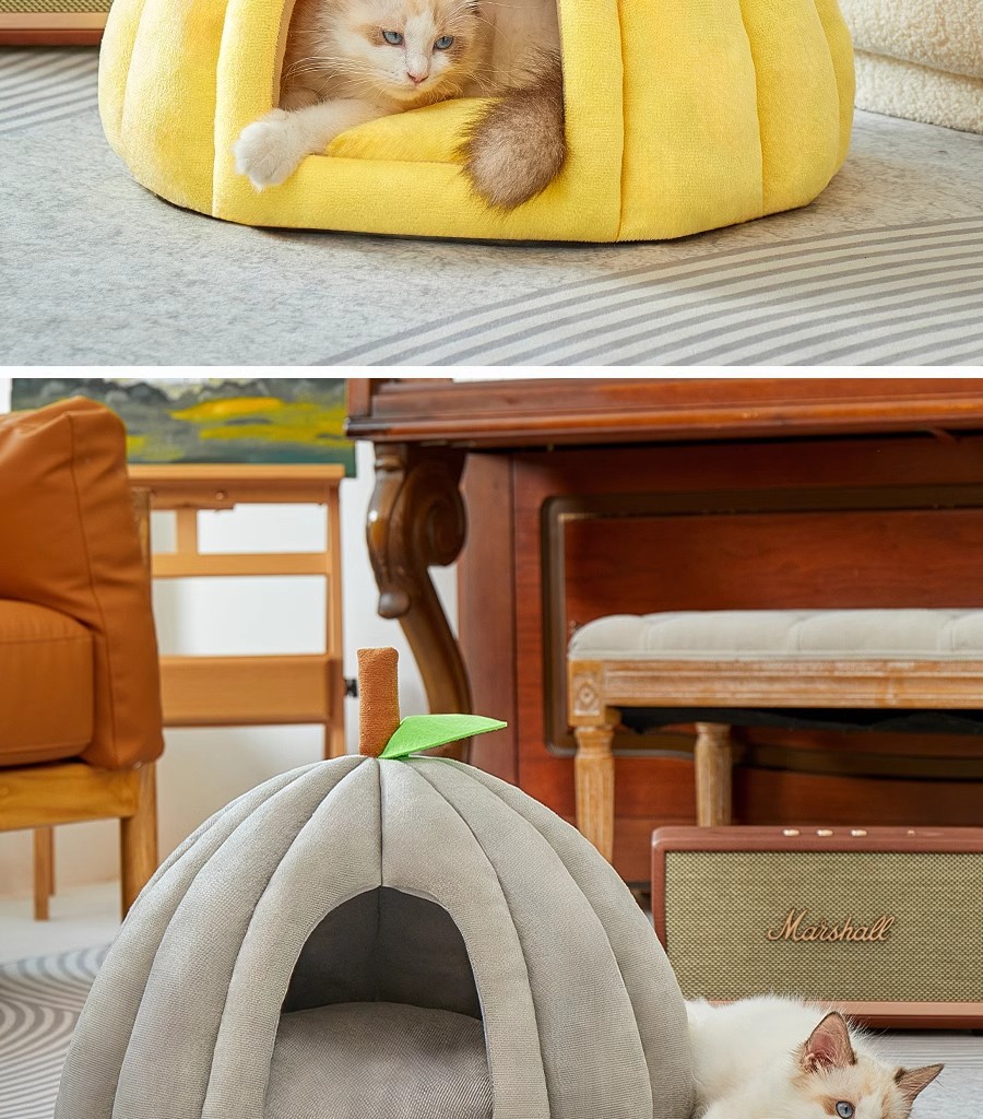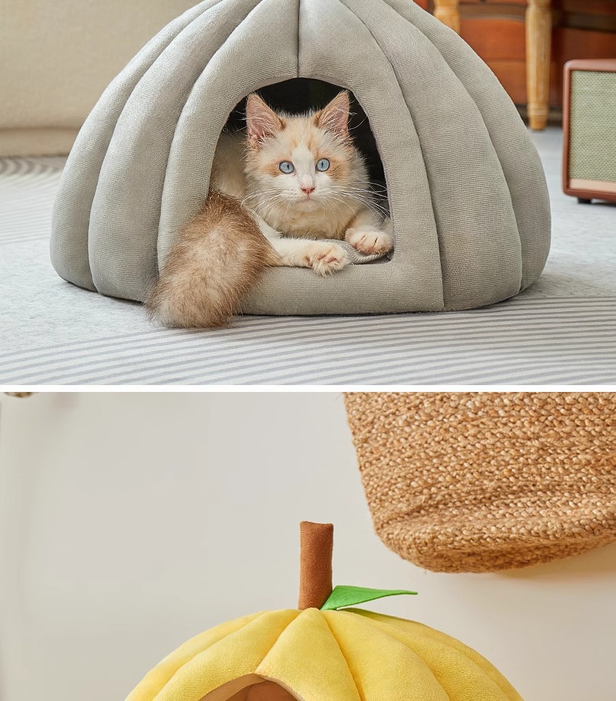 Cama para gatos Four Seasons Cama para gatos universal Cama para perros Gato Cerrado y seguro Nido para dormir Casa de escape Nido para mascotas engrosado de calabaza