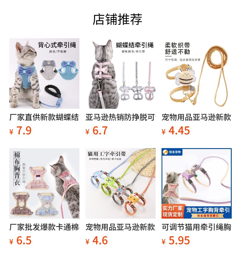 Fabricante en stock bowknot algodón en forma de I gato cuerda de tracción anti-rotura ajustable suave gato cuerda gato cadena