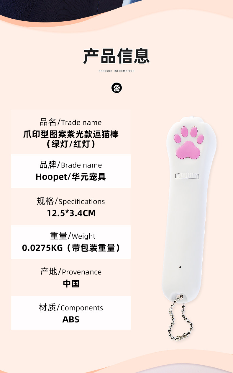 | Color | Patrón de impresión de la pata luz púrpura gato divertido palo (luz roja) |