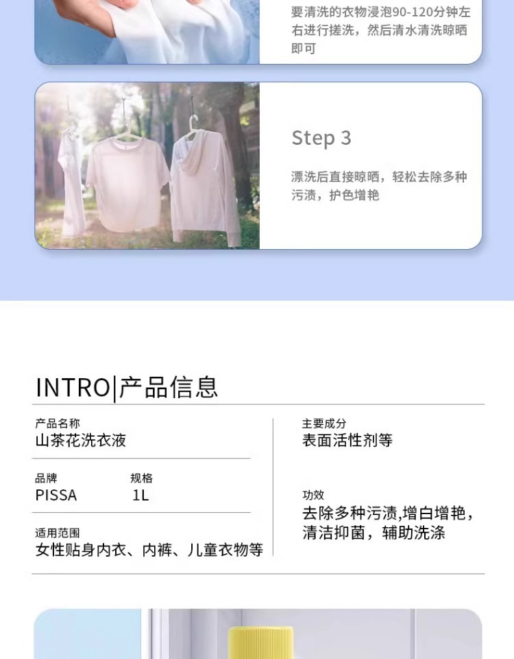 Líquido para ropa, limpieza profunda, fragancia duradera, camelia, descontaminación en el hogar de los estudiantes, protección del color y eliminación de manchas