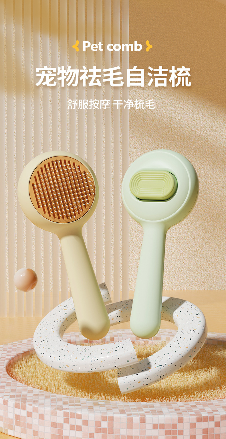 Nuevo peine transfronterizo para mascotas, peine de aguja de belleza, botón grande, peine autolimpiante para mascotas, peine para perros, limpieza de pelo, suministros para mascotas
