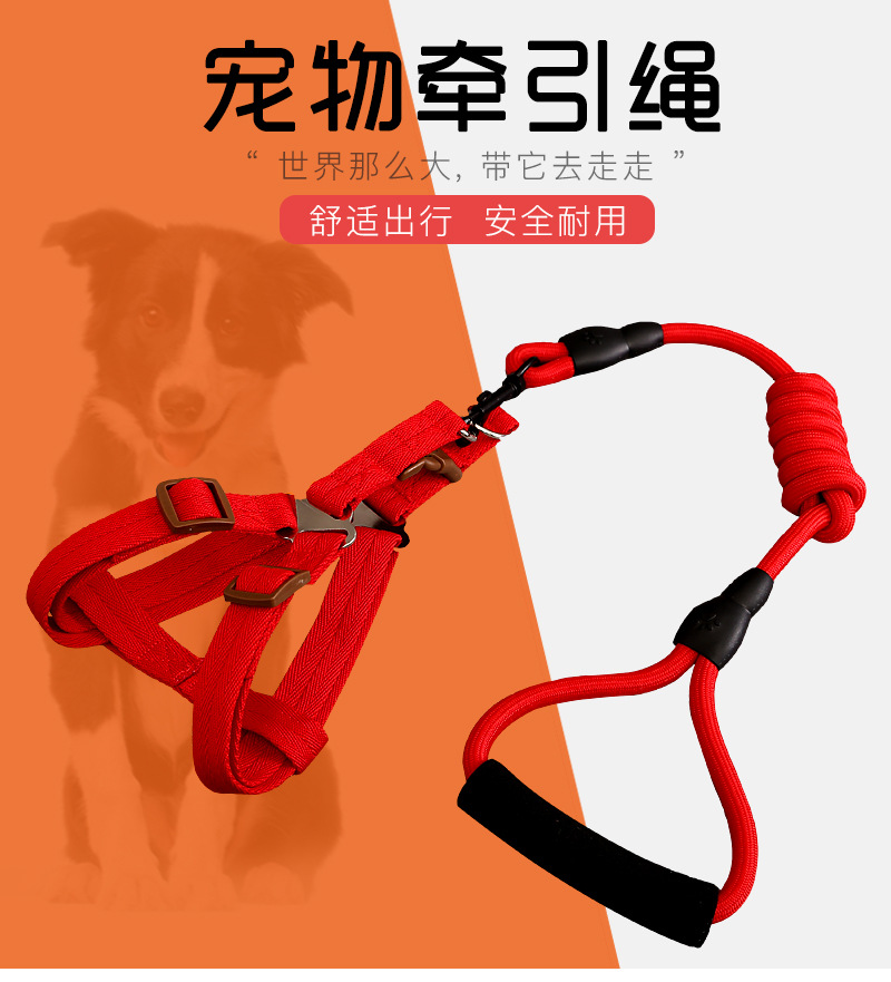 Suministro directo de fábrica mascota perro cuerda de tracción nylon a prueba de explosiones de perforación cuerda de tracción cuerda de perro correa de pecho conjunto de suministros para mascotas