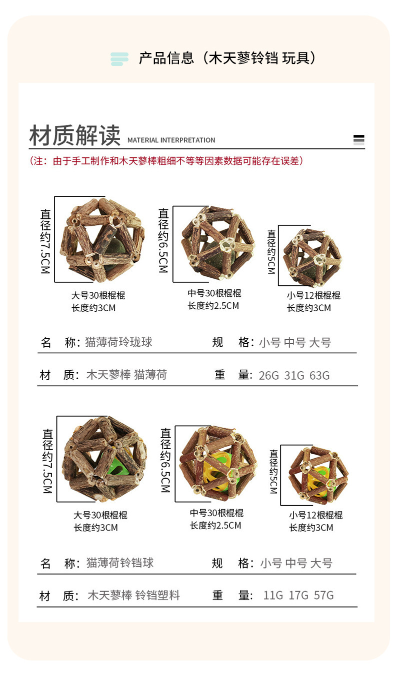 Suministros para mascotas, moler los dientes, pelotas de menta gatera, juguetes para gatos, campanas de Mutian Polygonum, pelotas exquisitas, juguetes para gatos para aliviar el aburrimiento
