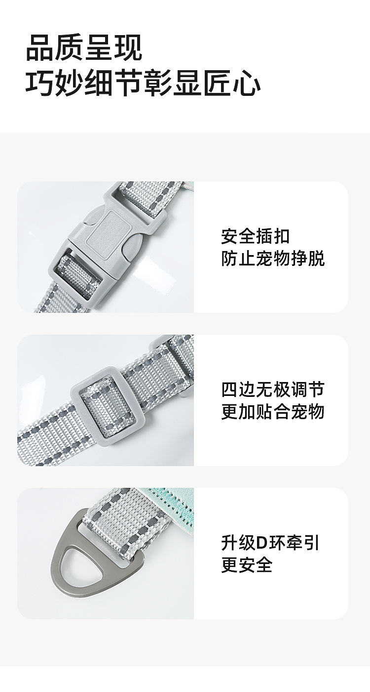 Nueva correa de perro transpirable para mascotas correa de pecho chaleco reflectante cuerda de perro correa de mascota al por mayor