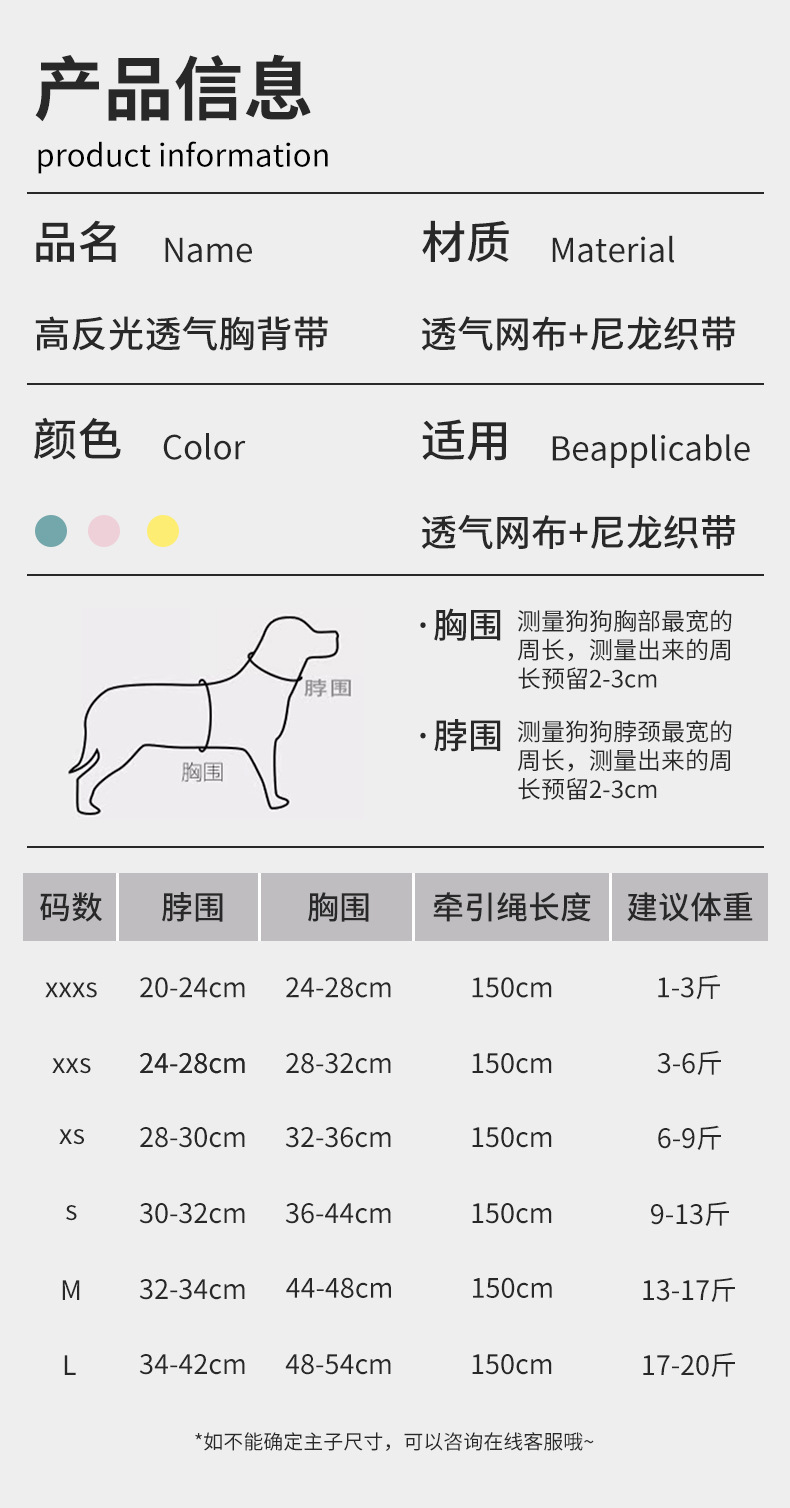 Correa de perro transfronteriza para mascotas correa de pecho estilo chaleco reflectante correa de perro gato tracción correa de perro suministros de cuerda de perro