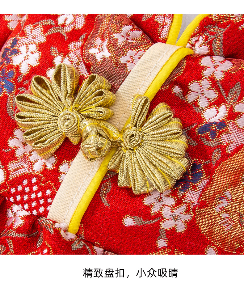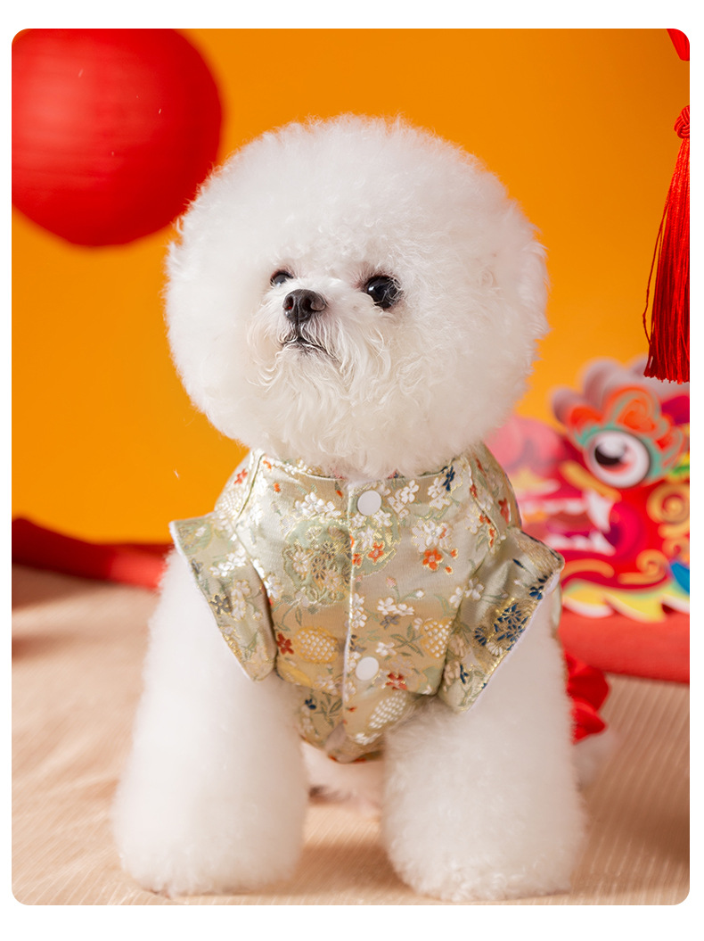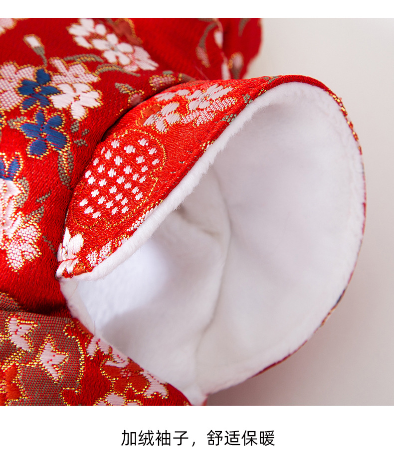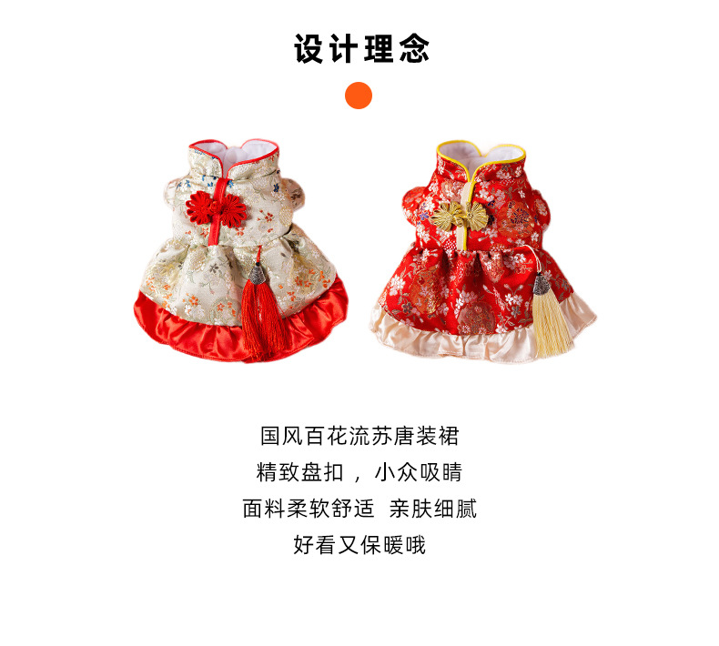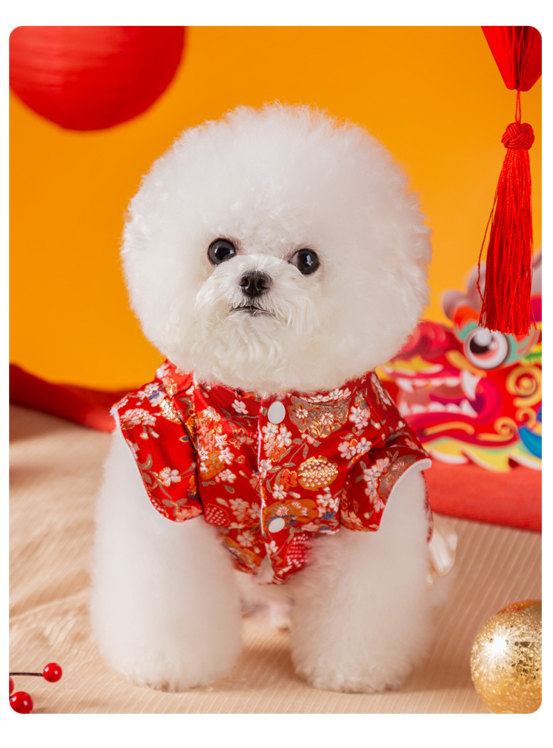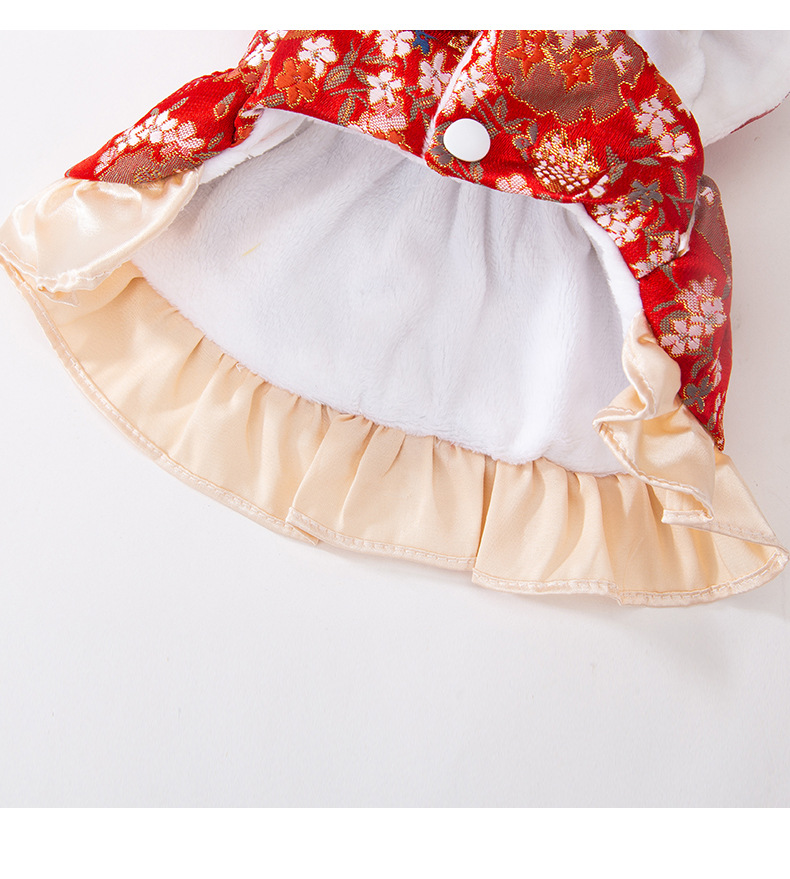 Otoño e invierno perro cien flores borlas vestido de traje Tang gato de dos pies año nuevo festivo año nuevo falda ropa para mascotas