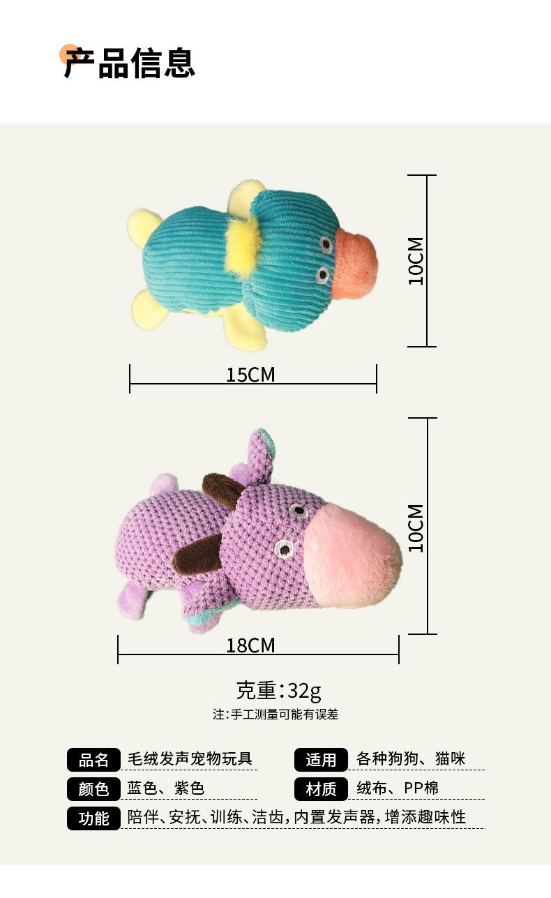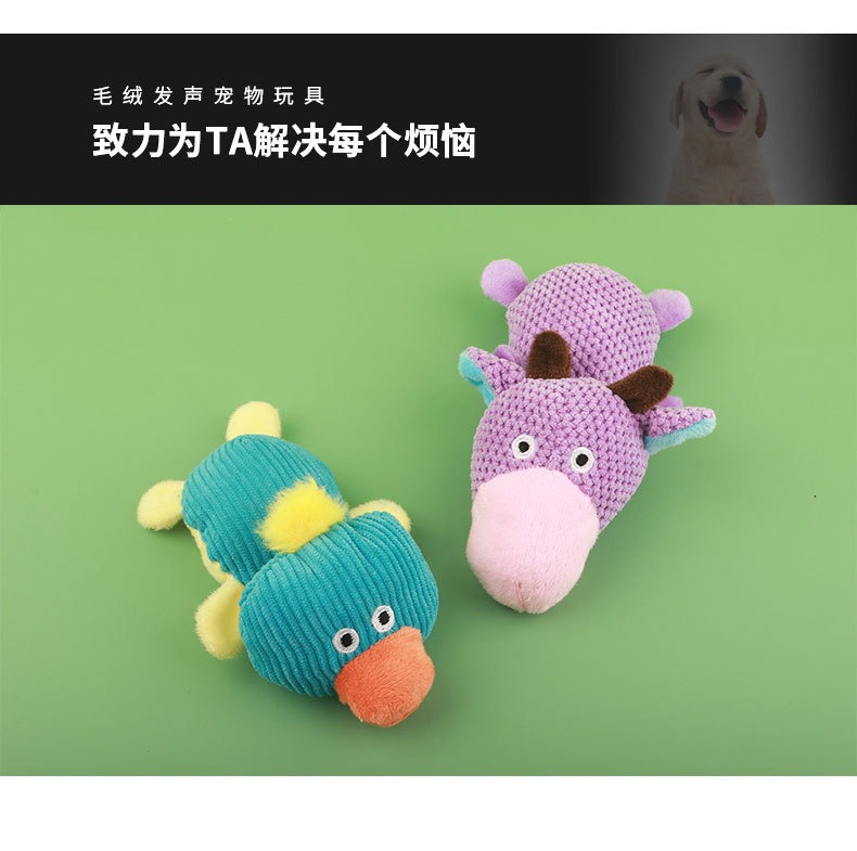Juguetes de mascotas sonidos de perro muñecas de peluche resistentes a la mordida, bueyes y patos, modelado transfronterizo, venta al por mayor