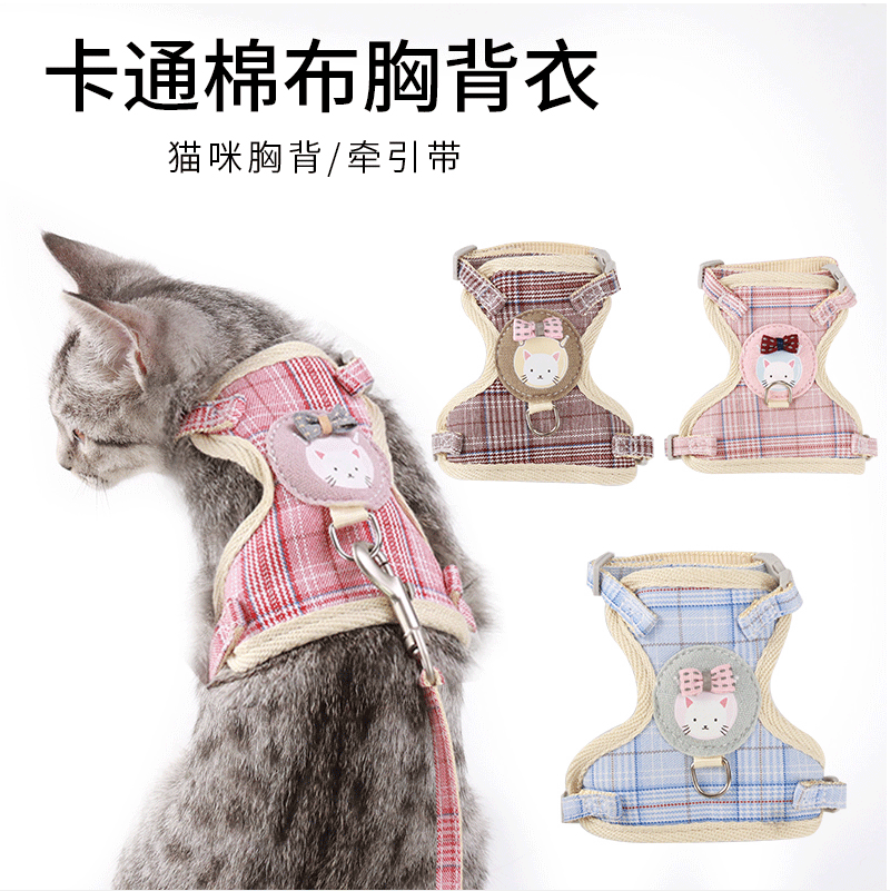 Fabricantes al por mayor explosión de tela de algodón de dibujos animados, cinturón de pecho de gato, cuerda de tracción de gato, cuerda de tracción de gato para caminar