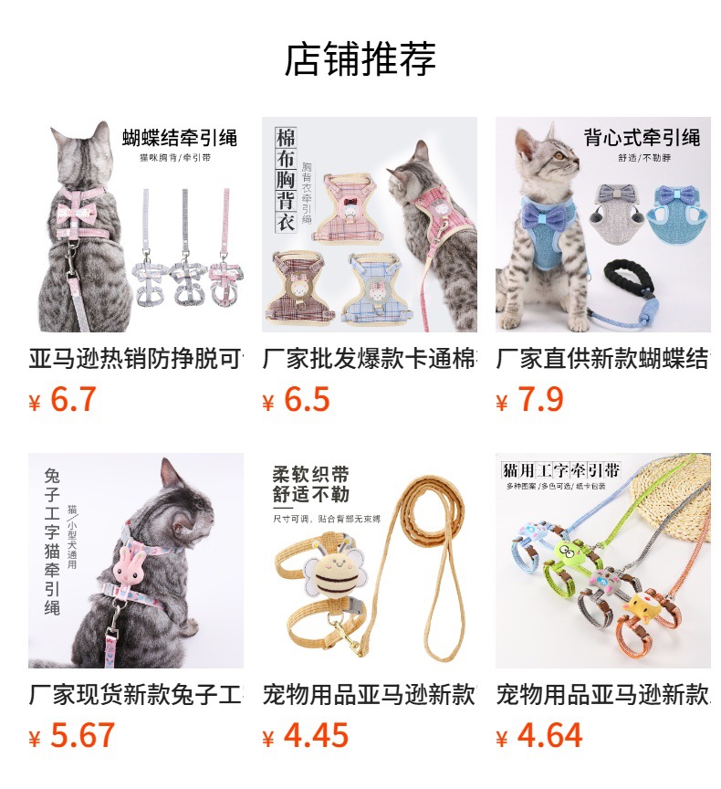 Nuevo tipo transfronterizo de cuerda de tracción para gatos anti-desprendimiento chaleco ajustable para salir cuerda de gato correa de pecho para artículos de mascotas