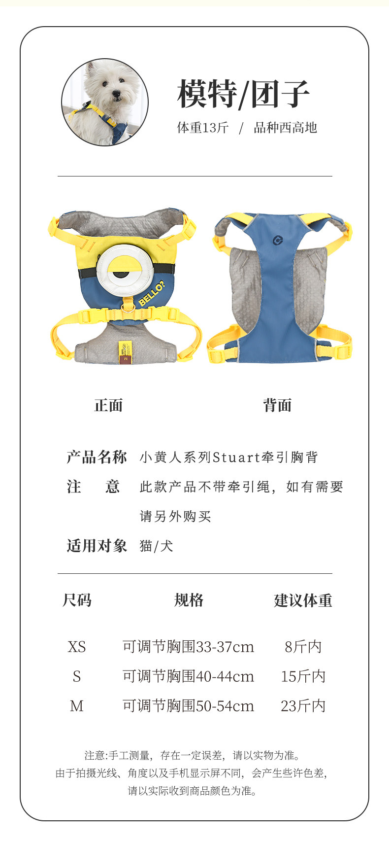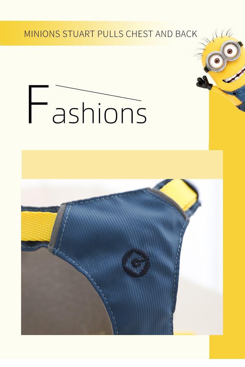 Minions Minions | Stuart tira del pecho y la espalda, perro pequeño y mediano, perro paseando, cadena de perro, correa de perro, correa de perro