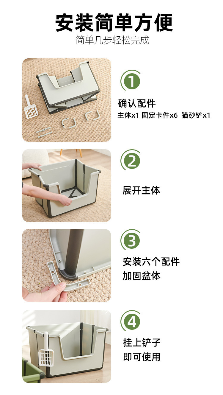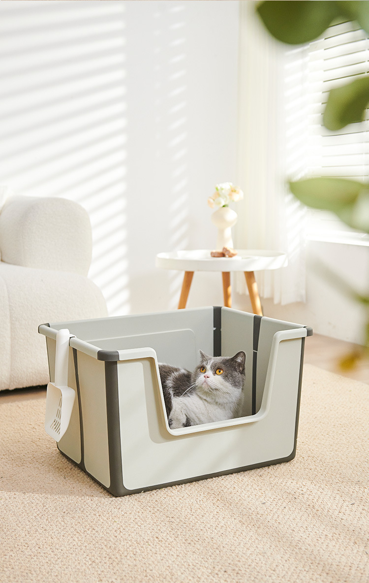 Una caja de arena plegable para gatos, baño portátil para gatos, valla alta, caja de arena semicerrada, fábrica al por mayor
