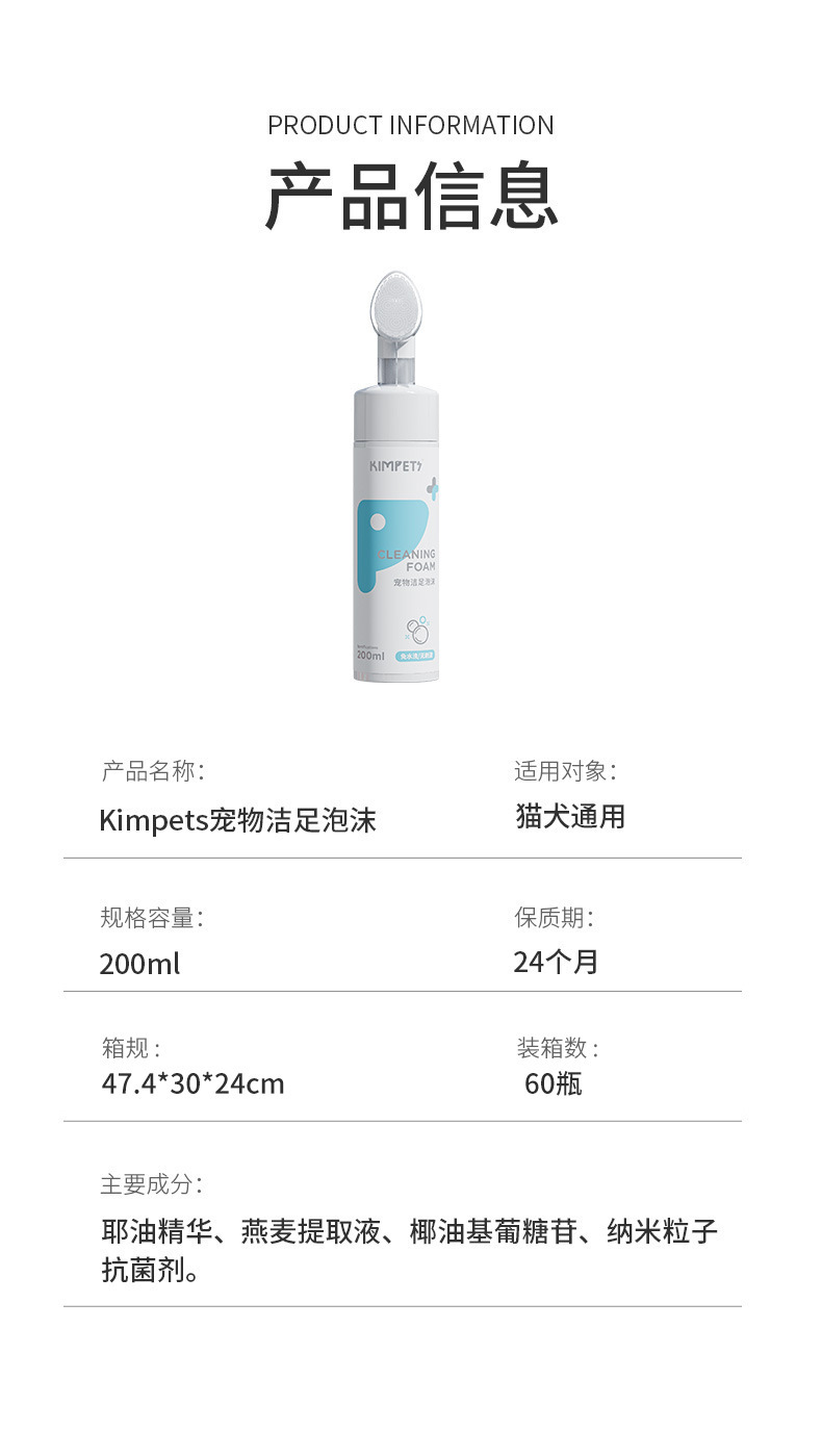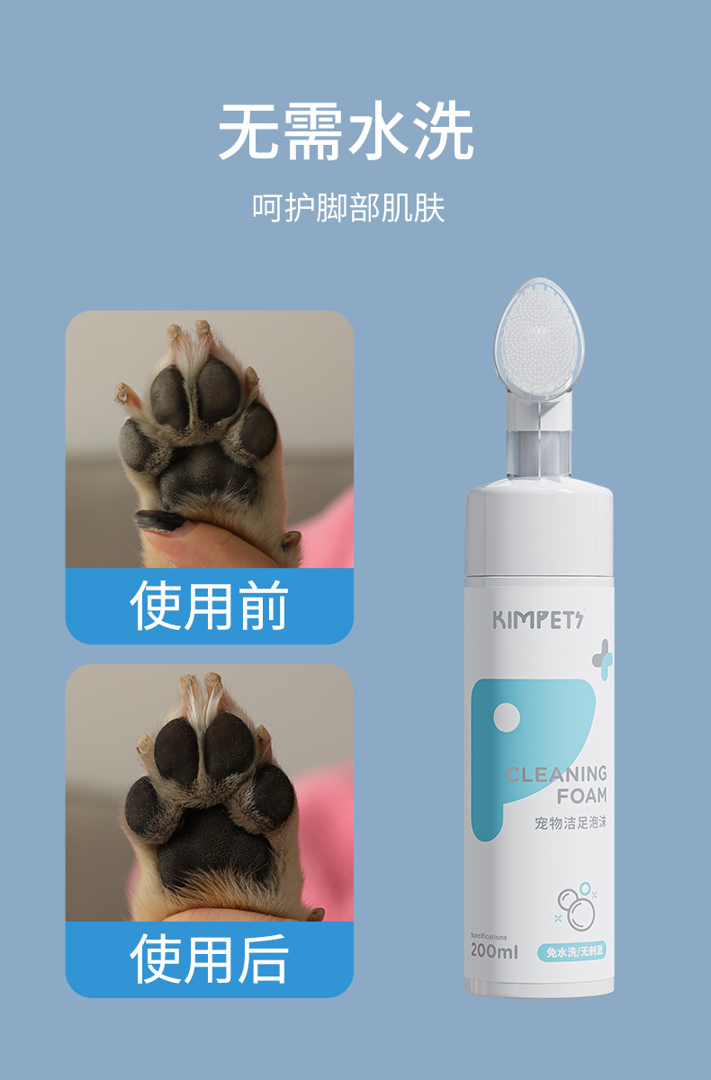 Kimpets gato perro pata lavado limpieza espuma masaje suministros 200ml * 1