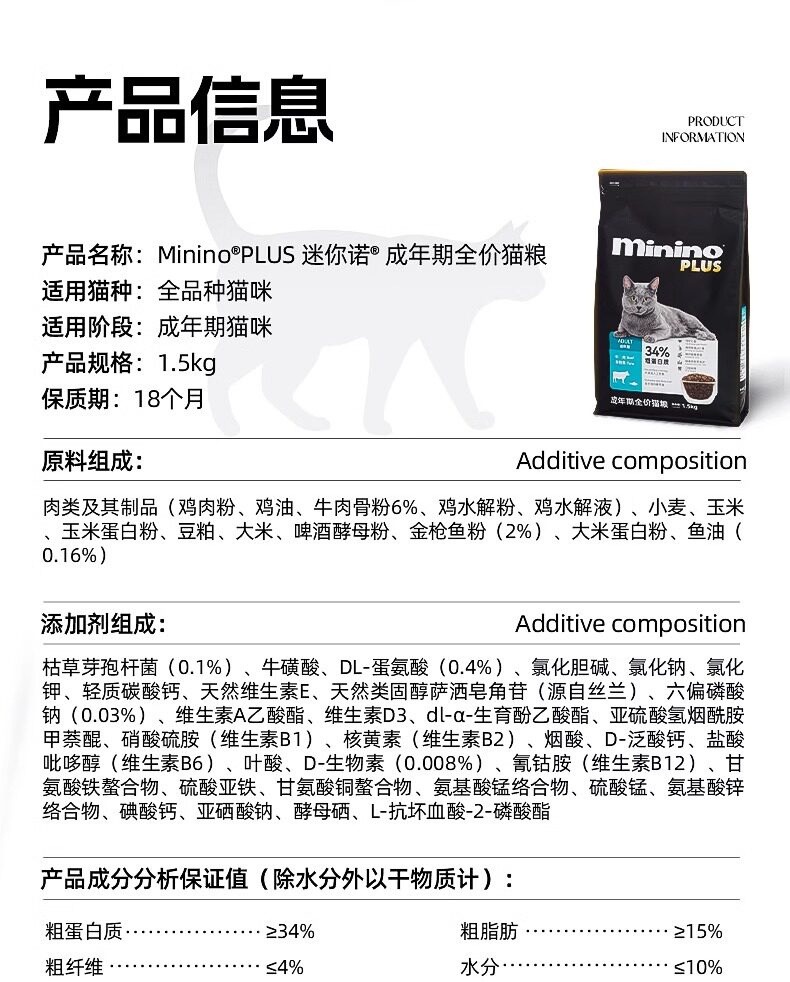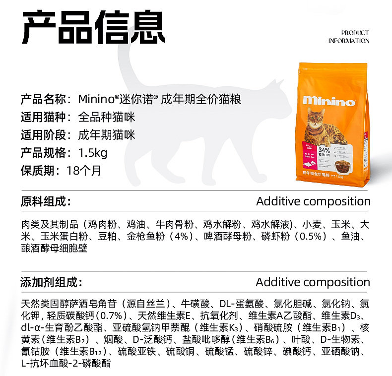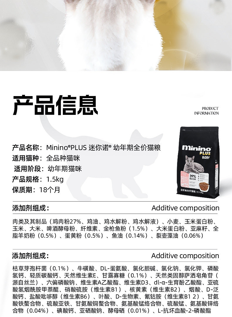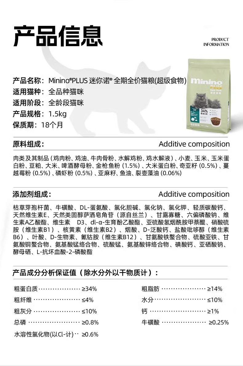 México Minino Mini Nuo Comida para gatos Superalimentos a precio completo Comida para gatos Comida para gatos adultos Comida para gatos jóvenes 1.5kg
