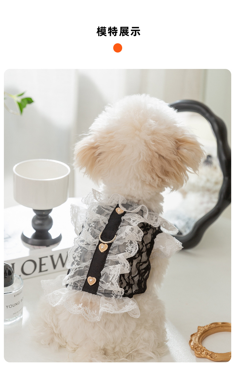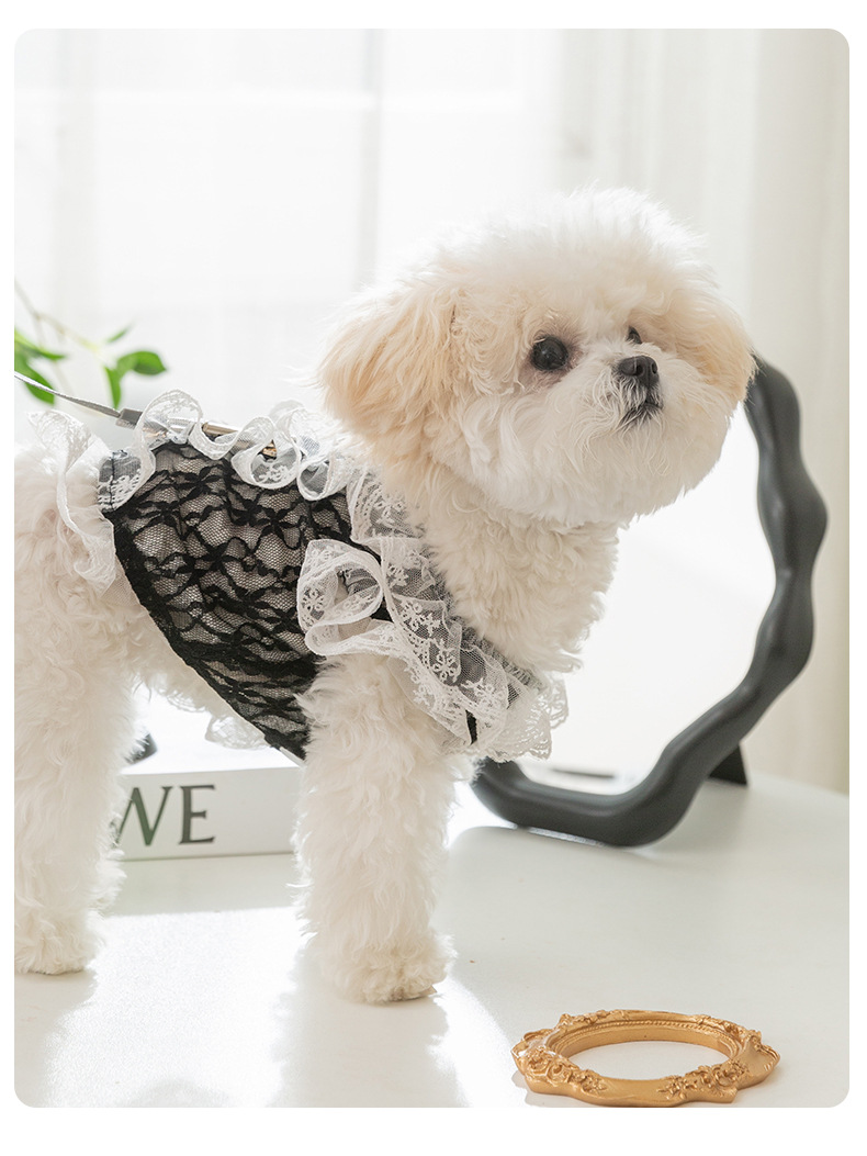 Primavera y verano sexy chaleco de tracción de encaje blanco y negro para perros pequeños y medianos gatos Teddy pet dog clothes