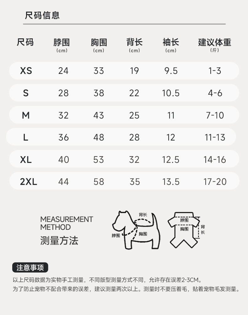XS-espalda larga 19CM(1-3 kg)