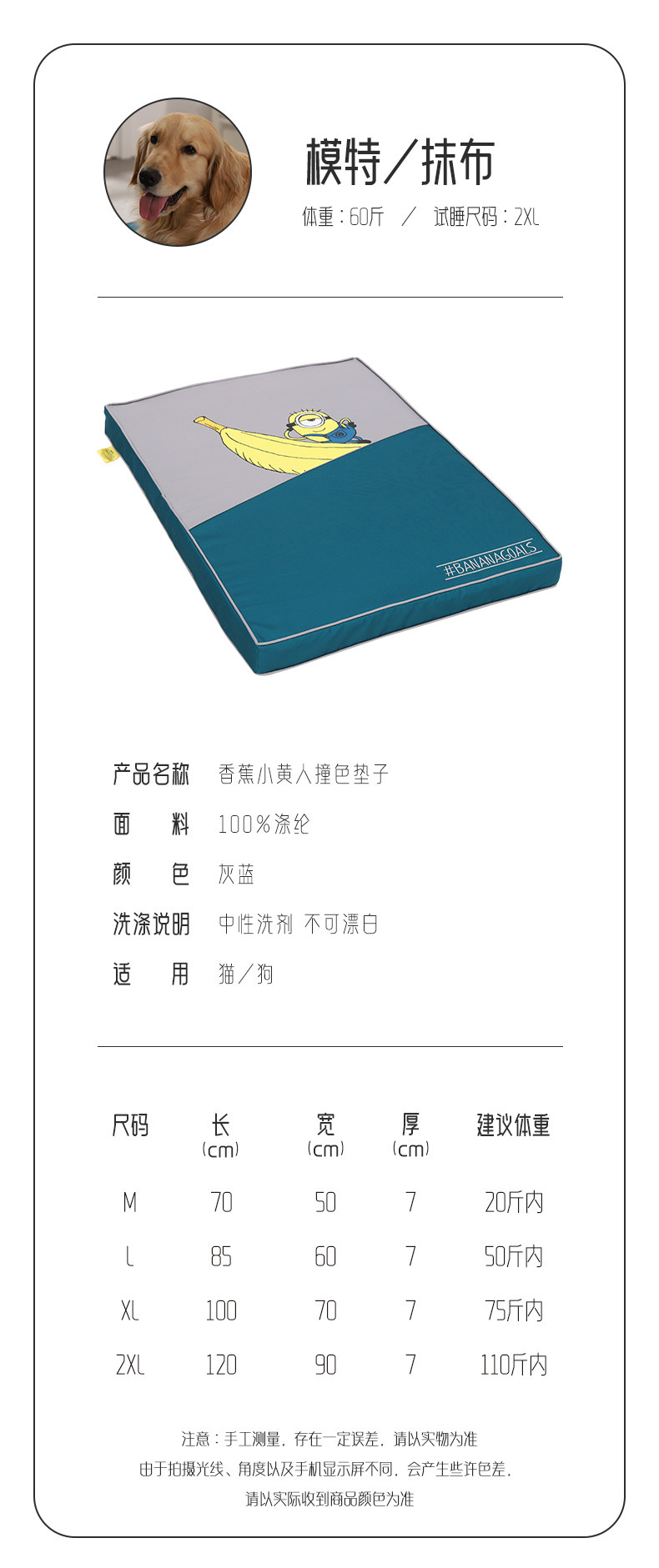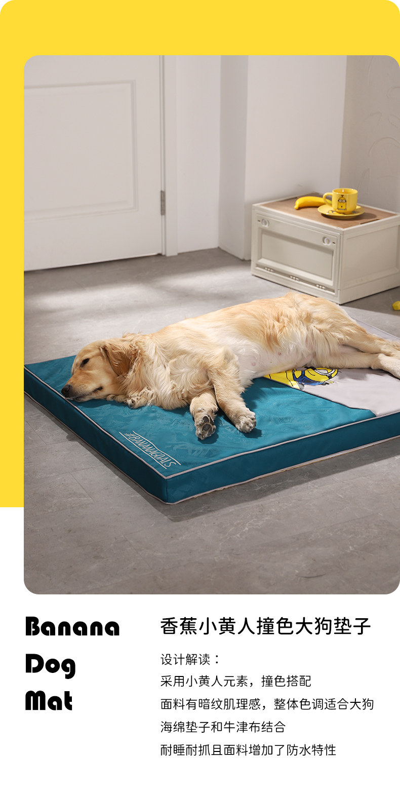 | Color | Plátano pequeño amarillo choca con el color de la colchoneta del perro grande |