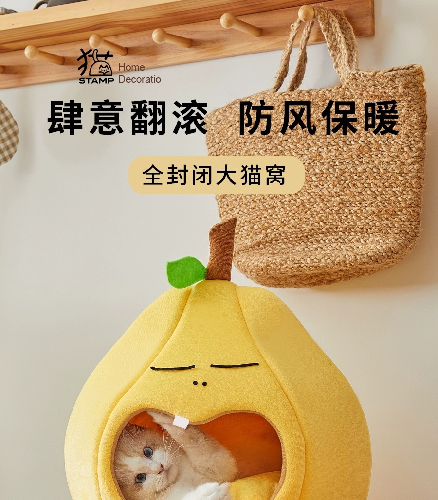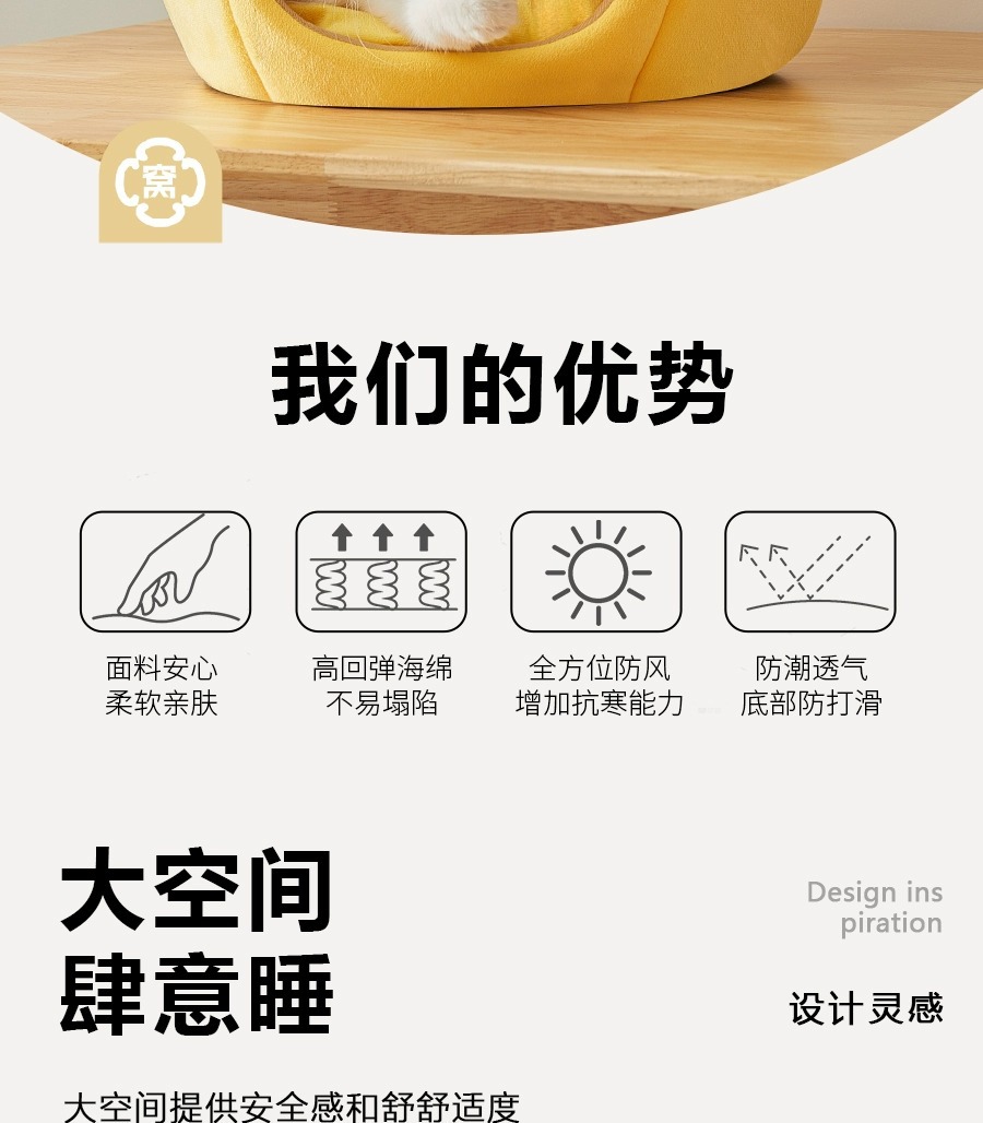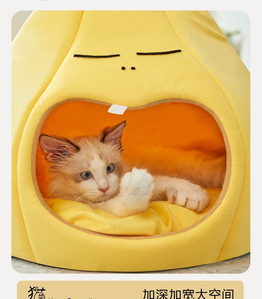Cama de gato de invierno caliente semicerrada para dormir gatos, cama de gato de invierno, suministros generales de perros de cuatro estaciones